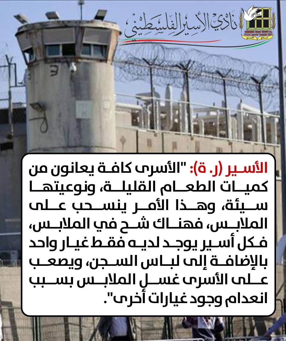 واستنادا لـ(36) أسيراً تمت زيارتهم مؤخرا في سجن (النقب، وعوفر)، فإن الإفادات تمركزت حول عمليات القمع التي شهدها الأسرى مؤخرا وما رافقها من عمليات تنكيل، وضرب، واعتداءات بمختلف أشكالها، وكذلك استمرار انتشار المرض بنسبة كبيرة بين صفوفهم، إضافة إلى الجوع الذي تحوّل إلى أداة تعذيب مع مرور المزيد من الوقت وإصابة العديد منهم بنقصان حاد في الوزن وهزال وتعب، هذا عدا عن جملة من التفاصيل الكثيفة، واليومية التي تتعلق بانعدام توفر أدنى مقومات الحياة، ومنها شح الملابس، والأدوات التي يمكن أن تسهم في حفاظ الأسرى على نظافتهم.