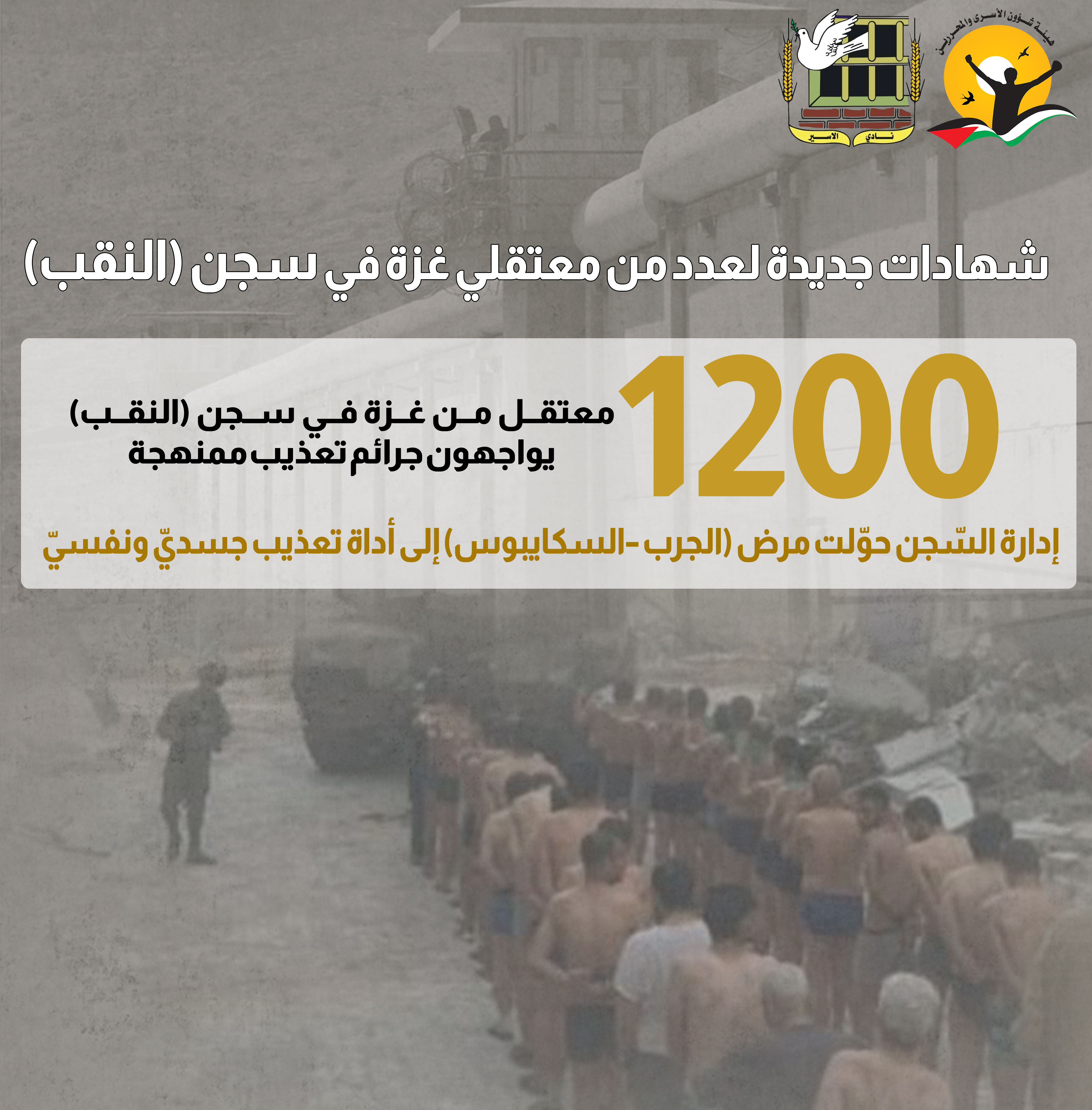 (1200) معتقل من غزة في سجن (النقب) يواجهون جرائم تعذيب ممنهجة