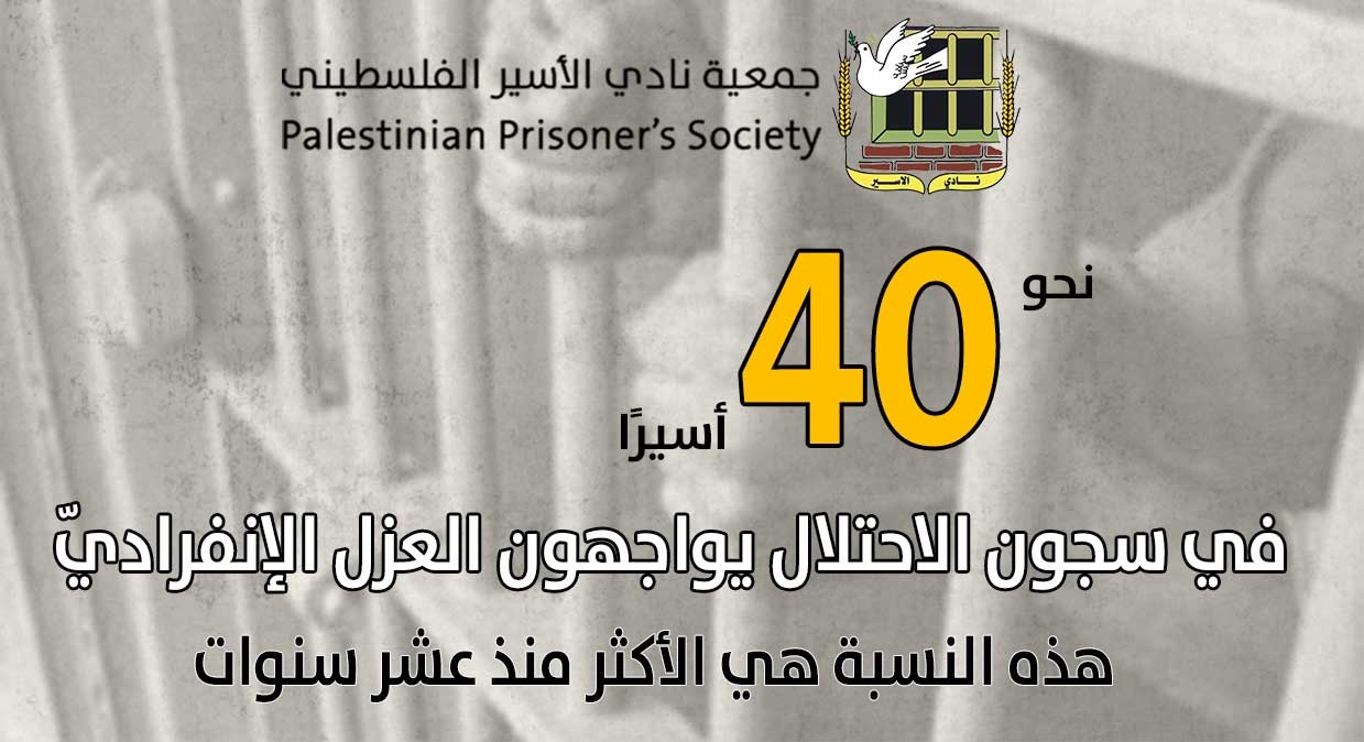 نادي الأسير نحو 40 أسيرًا في سجون الاحتلال يواجهون العزل الإنفراديّ