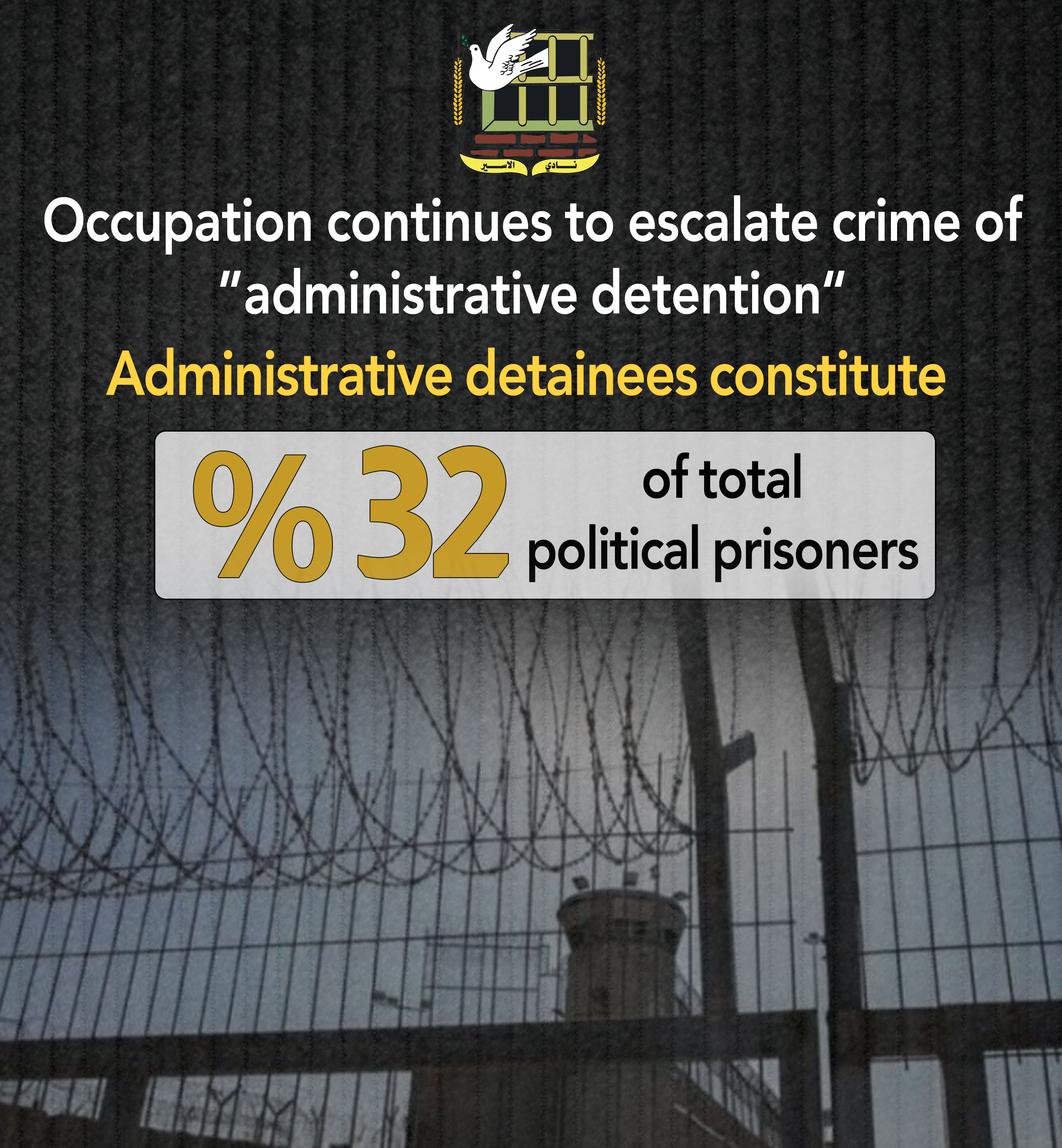⭕ المعتقلون الإداريون يشكّلون 32% من إجمالي الأسرى