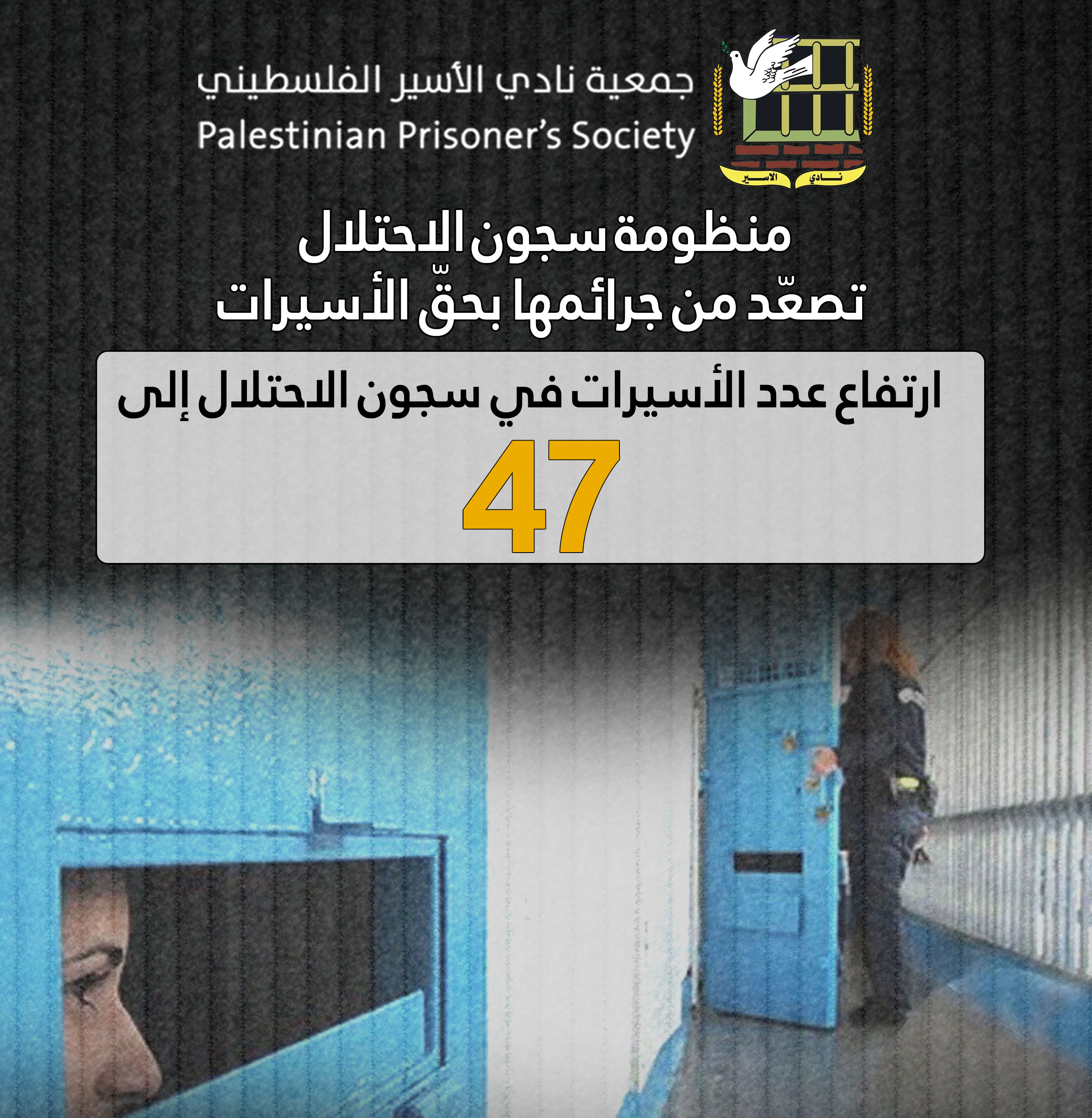 ● ارتفاع عدد الأسيرات في سجون الاحتلال إلى (47)