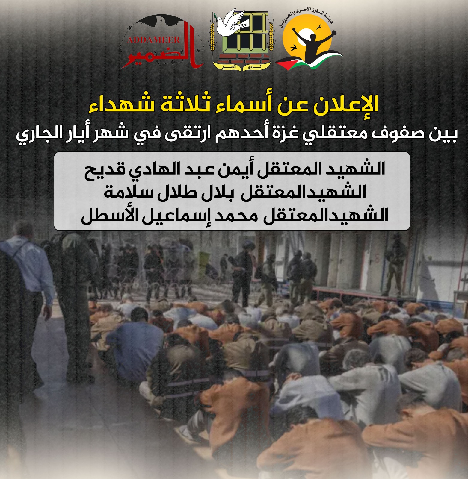 *مؤسسات الأسرى: الإعلان عن أسماء ثلاثة شهداء بين صفوف معتقلي غزة*