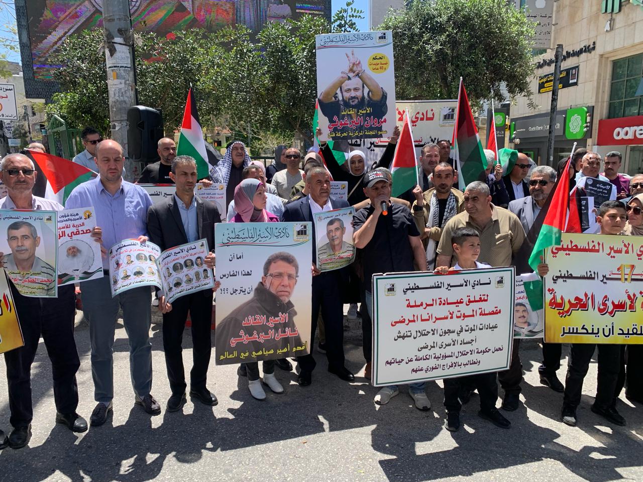 وتخلل الوقفة الوطنية ترديد الهتافات الوطنية المشيدة بصمود الاسرى والمنددة بجرائم الاحتلال بحقهم ..