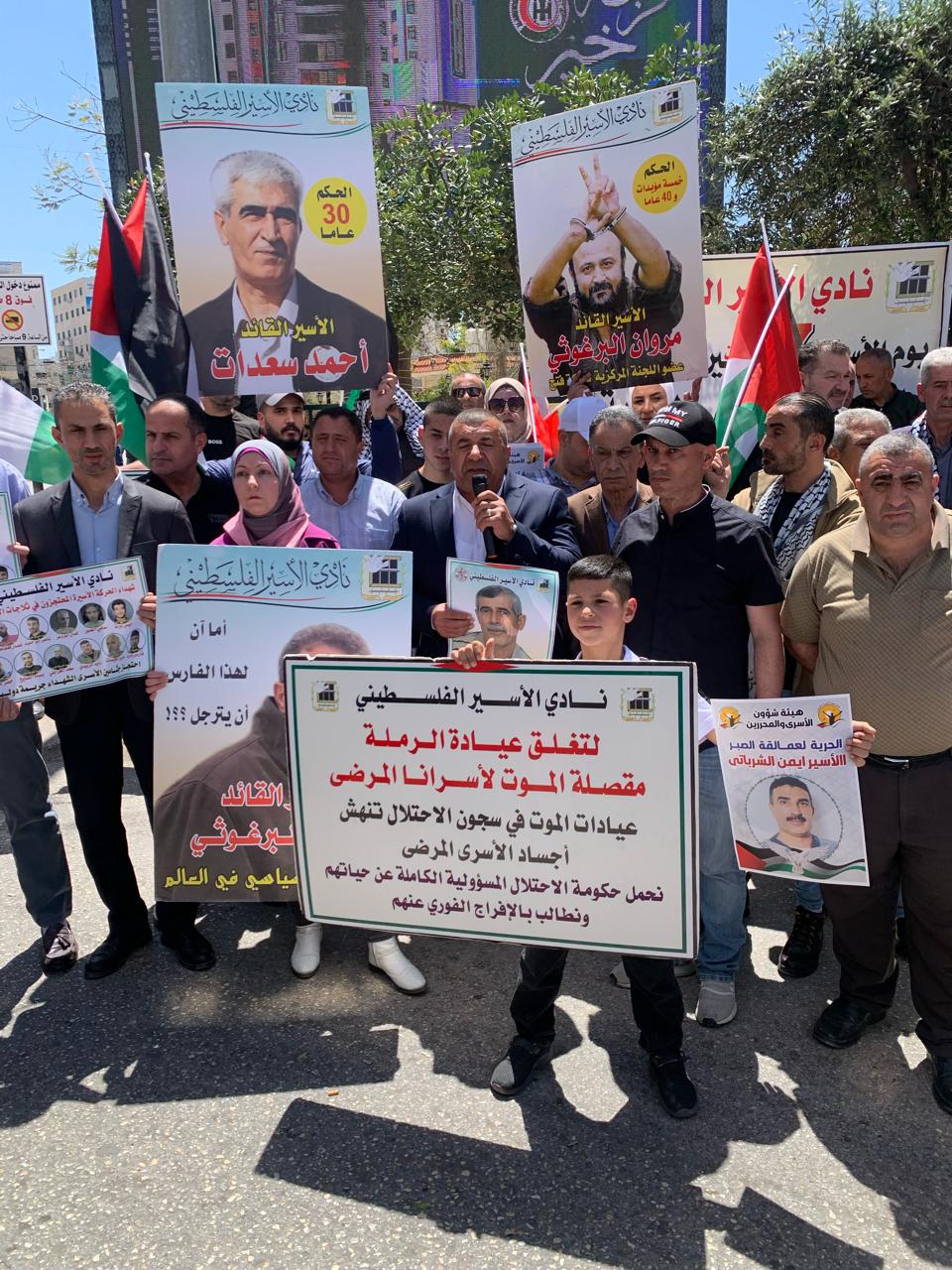 إحياء ليوم الأسير الفلسطيني نظم نادي الأسير الفلسطيني ، وهيئة شؤون الأسرى والقوى الوطنية، ولجان أهالي الأسرى وقفة وطنية جماهيرية دعما واسنادا للأسرى والاسيرات القابعين في سجون الاحتلال، تحت عنوان ( لننتصر لاسرانا وأسيراتنا في سجون الاحتلال ولتتوقف حرب الإبادة الجماعية بحق أبناء شعبنا في غزة هاشم ) ، وذلك وسط دوار ابن رشد في مدينة الخليل وشارك في الوقفة الوطنية حشد من أبناء المحافظة وفعالياتها، ومحافظ الخليل خالد دودين وممثلي القوى السياسية وعائلات الأسرى وكوادر من الأسرى المحررين، وهيئة التوجيه السياسي والوطني ومؤسسات المحافظة الحكومية وغير الحكومية . ورفع المشاركون في الوقفة صور الأسرى والأسيرات، والأسرى المرضى، والأسرى الشهداء المحتجزة جثامينهم في ثلاجات الاحتلال ولافتات خطت عليها كلمات تحمل حكومة الاحتلال المسؤولية الكاملة عن حياة الأسرى والاسيرات وخاصة الاسرى المرضى، وأخرى تطالب بملاحقة ضباط إدارة السجون في المحاكم الدولية على الفظائع التي يرتكبوها بحق اسرانا واسيراتنا داخل سجون الاحتلال وتخلل المهرجان الوطني العديد من الكلمات التي ألقيت من قبل المشاركين، حيث أشاد الجميع بصمود الاسرى والاسيرات في وجه إدارة السجون منددين جميعا بجرائم الاحتلال المستمرة يوميا بحق الاسرى وبحق أبناء شعبنا في غزة هاشم ..