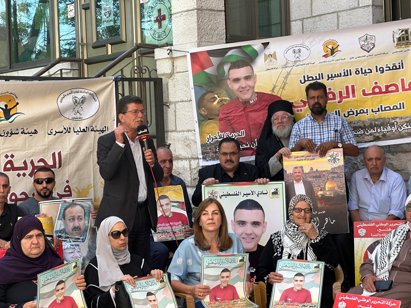 البيرة اليوم: من دعوة مؤسسات الأسـرى والقوى الوطنية والإسلامية، إسنادًا للأسير المصاب بالسرطان عاصف الرفاعي، وكافة رفاقه المرضى والمضربين عن الطعام، والأسرى في سجون الاحتلال، أمام الصليب الأحمر