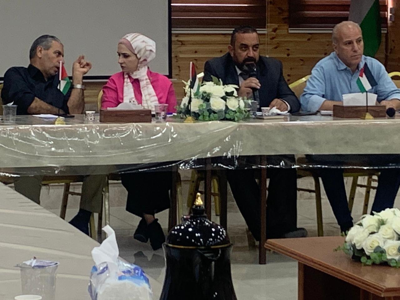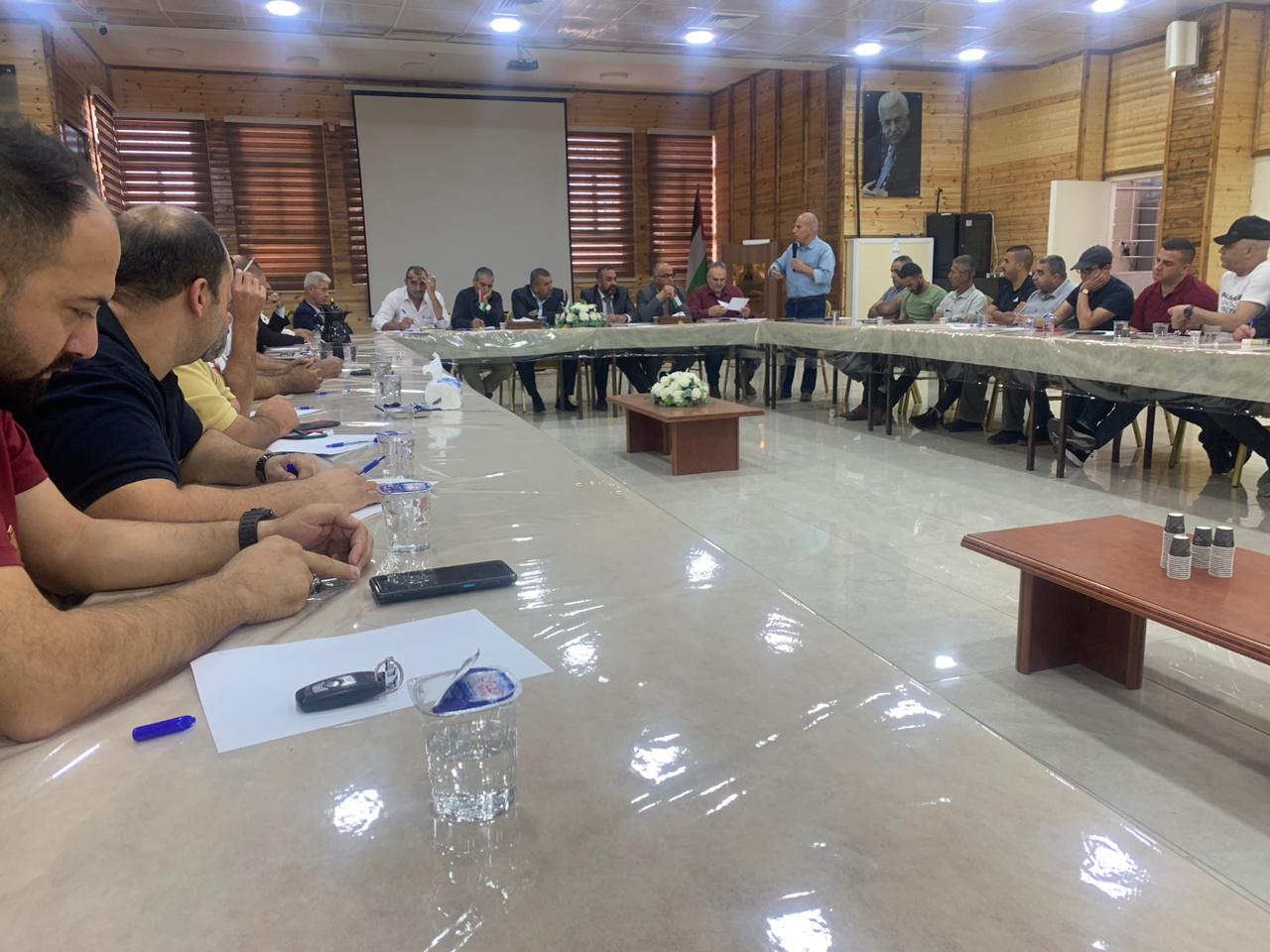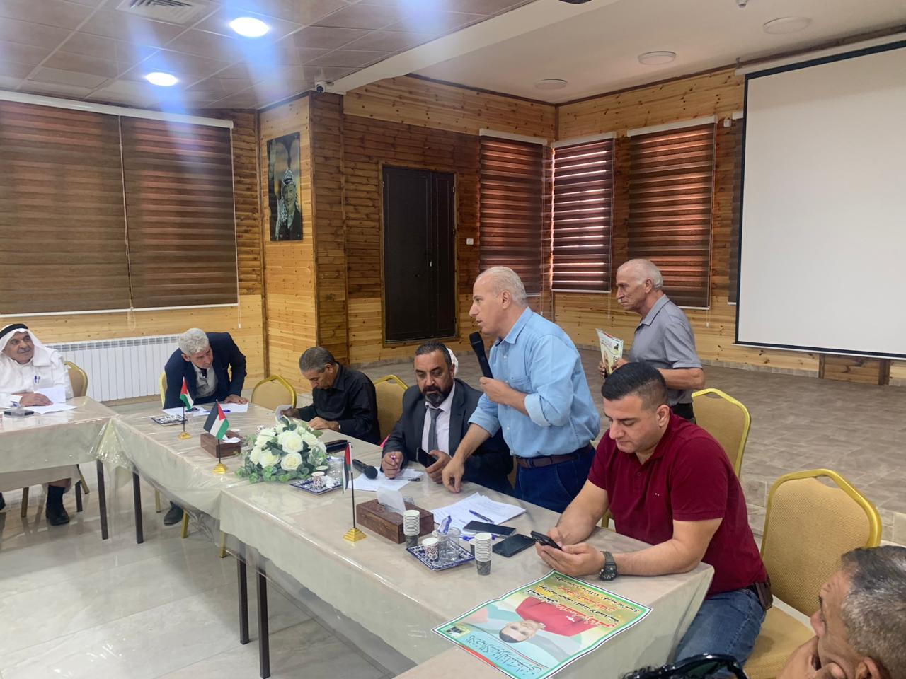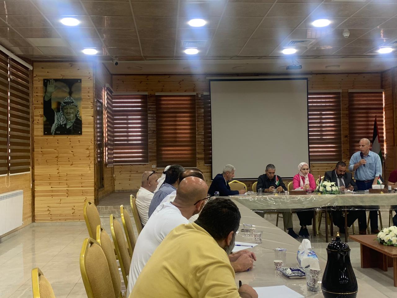 وأدار الاجتماع صفاء أبو سنينة المدير العام في الإدارة العامة في المحافظة وقيس دعنا مدير الدائرة السياسية في المحافظة وشارك العشرات من ممثلي الفعاليات والمؤسسات الرسمية والشعبية ومنسق القوى الوطنية في المحافظة وكوادر من الاسرى المحررين ولجان أهالي الاسرى وذوي الاسرى إضافة الى هيئة التوجيه السياسي والوطني ومديرية التربية والتعليم والحملة الوطنية لاسترداد جثامين الشهداء وممثلي أقاليم حركة فتح وهيئة مقاومة الجدار والاستيطان ...