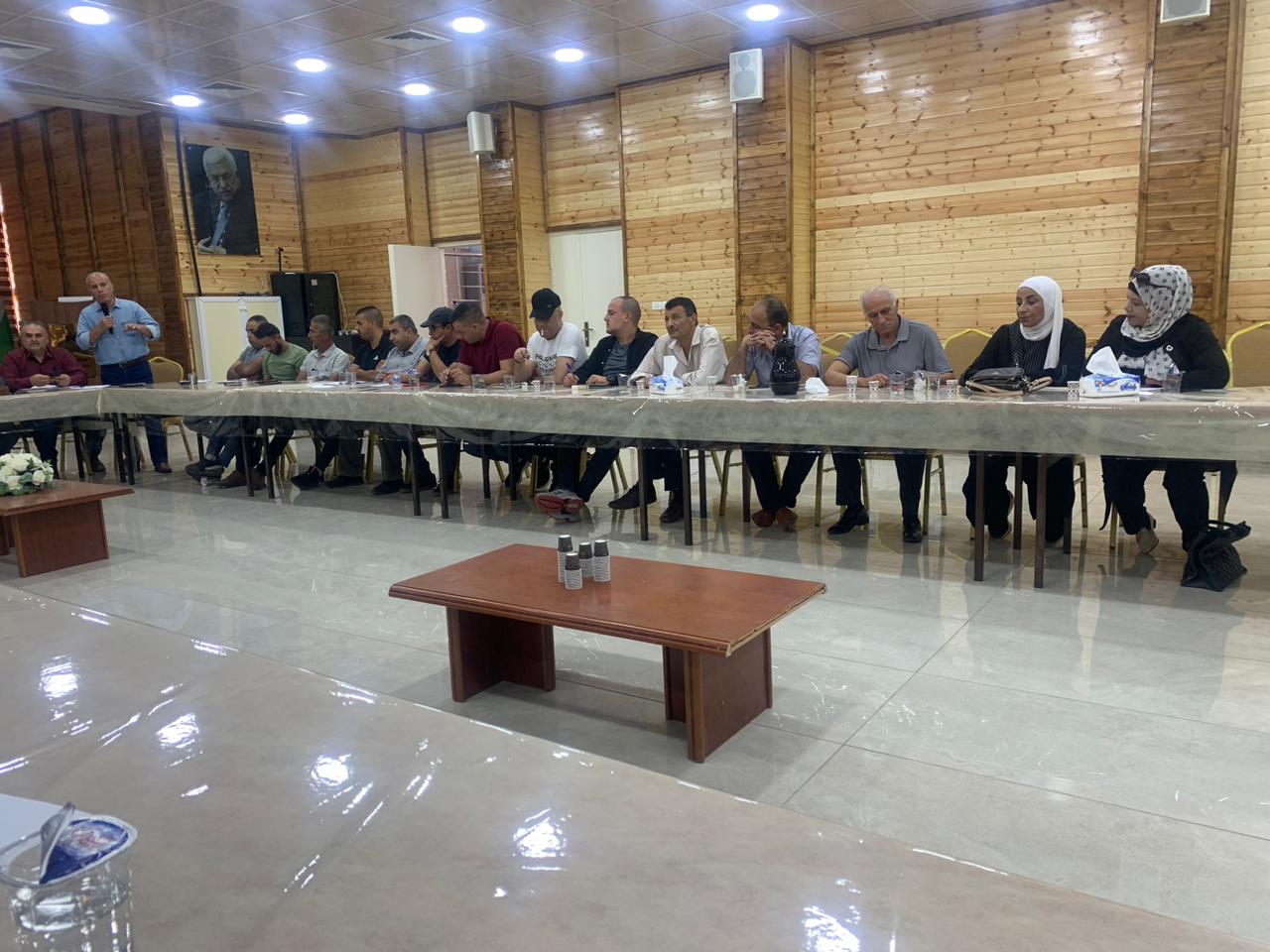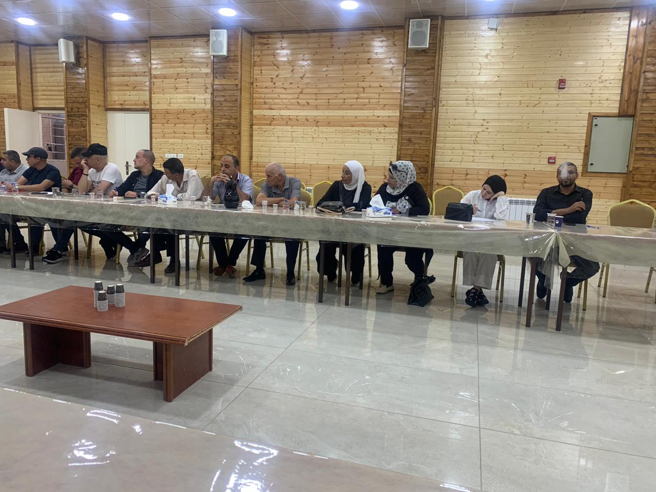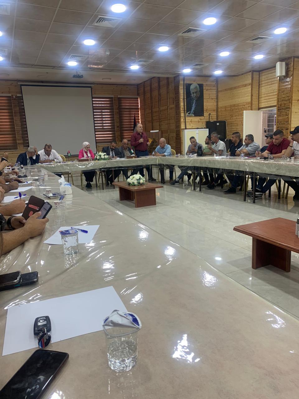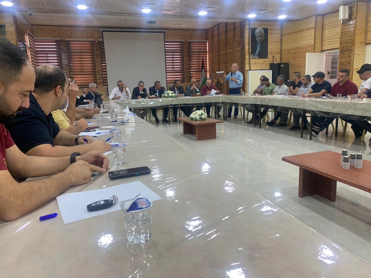 وأدار الاجتماع صفاء أبو سنينة المدير العام في الإدارة العامة في المحافظة وقيس دعنا مدير الدائرة السياسية في المحافظة وشارك العشرات من ممثلي الفعاليات والمؤسسات الرسمية والشعبية ومنسق القوى الوطنية في المحافظة وكوادر من الاسرى المحررين ولجان أهالي الاسرى وذوي الاسرى إضافة الى هيئة التوجيه السياسي والوطني ومديرية التربية والتعليم والحملة الوطنية لاسترداد جثامين الشهداء وممثلي أقاليم حركة فتح وهيئة مقاومة الجدار والاستيطان ...