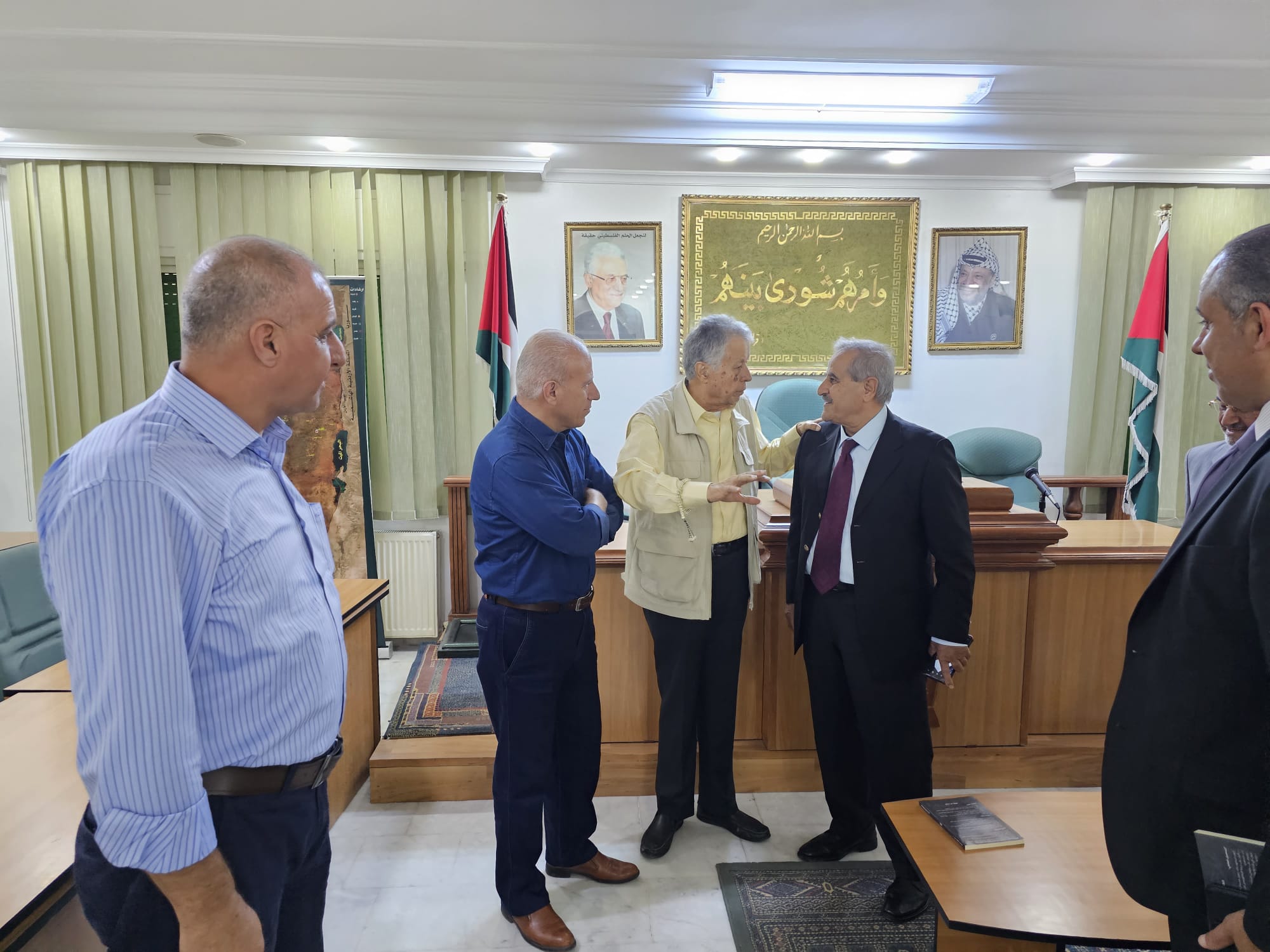وشارك في اللقاء وفد نادي الأسير الفلسطيني المكون من الاخوة عبد الله الزغاري رئيس النادي وامجد النجار مدير عام العلاقات العامة والاعلام ورائد عامر امين سر نادي الأسير والمحامي جميل سعادة مدير الوحدة القانونية في هيئة شؤون الاسرى والمحررين .