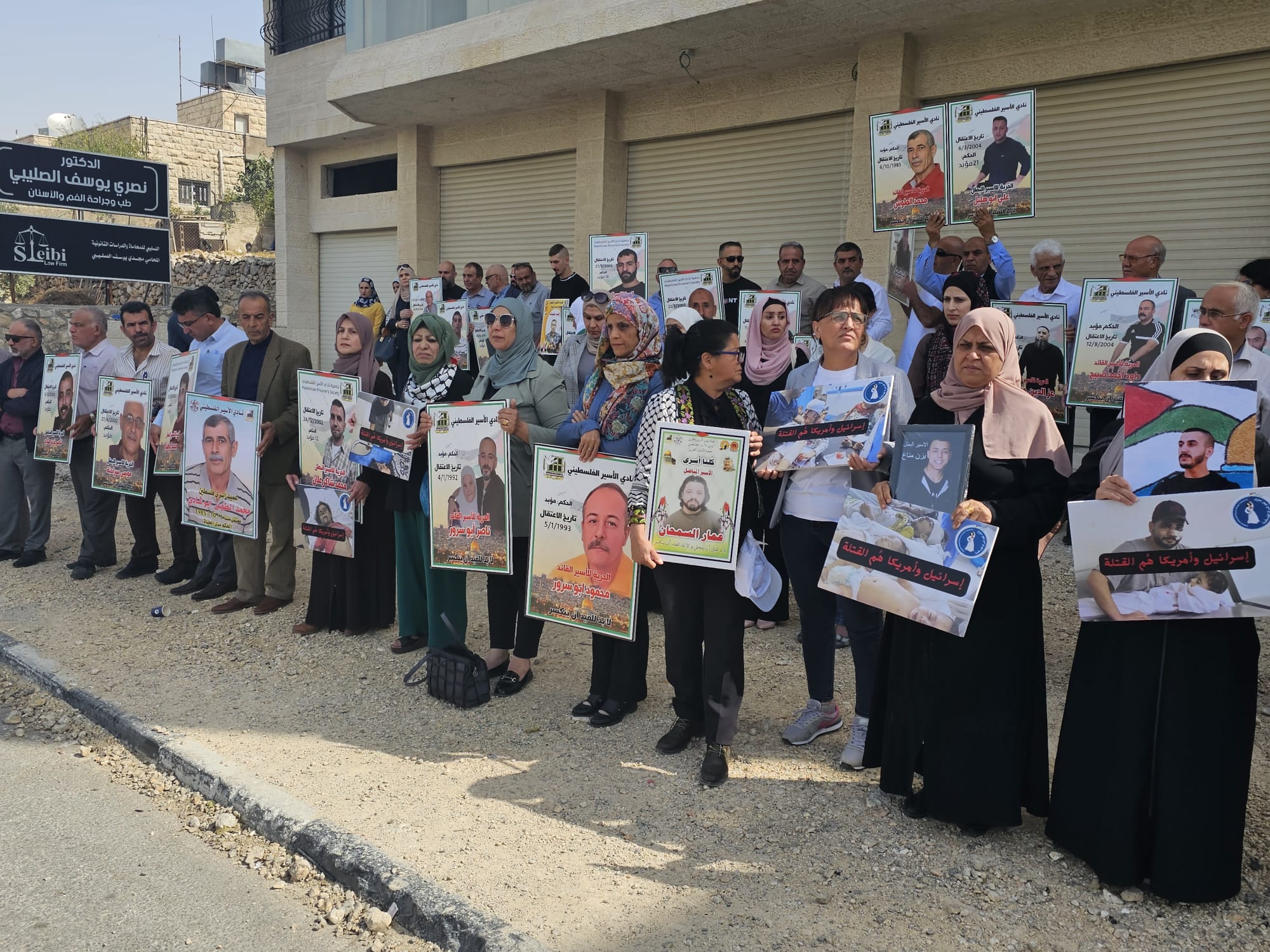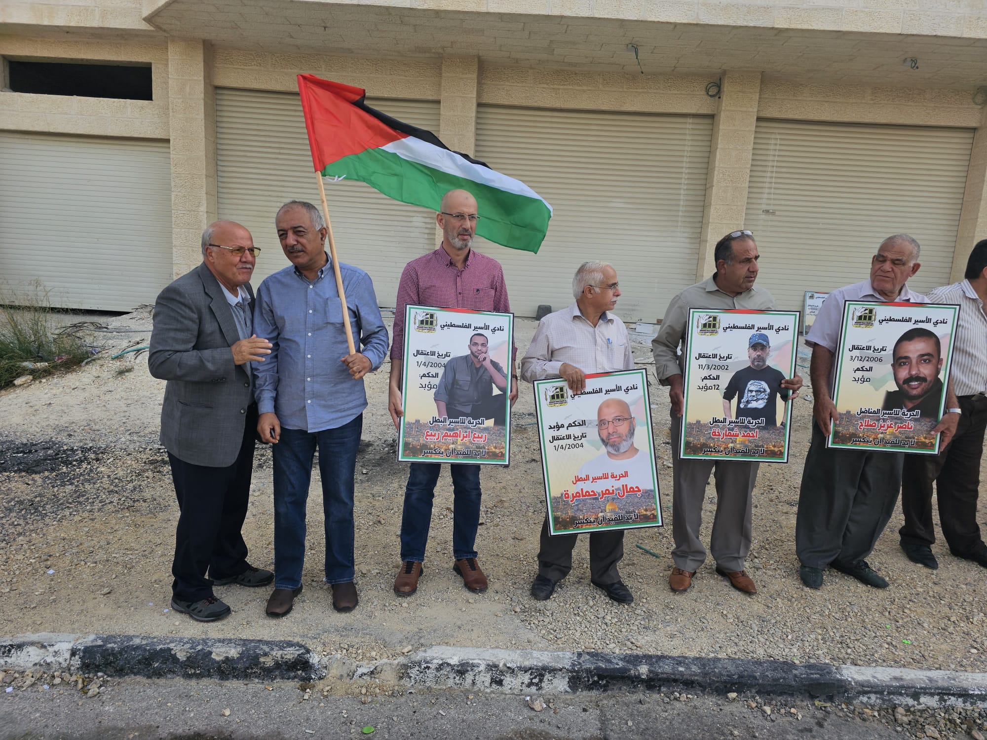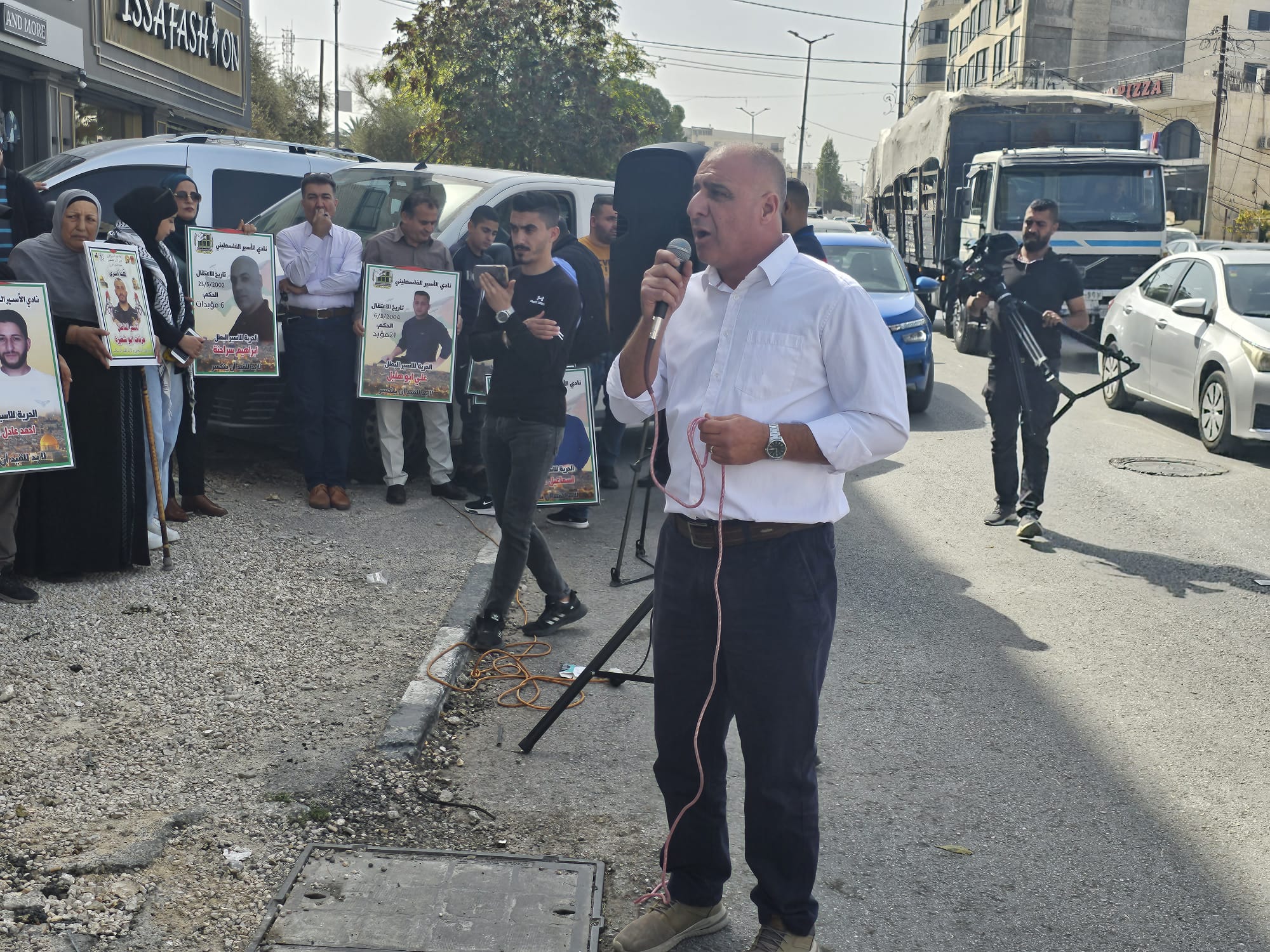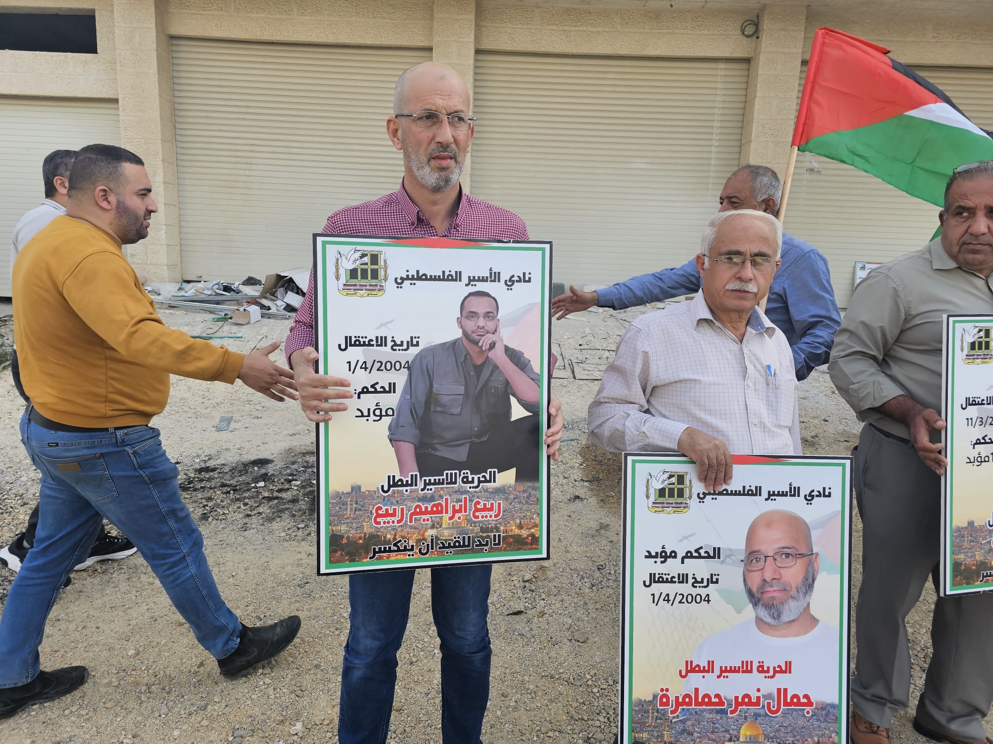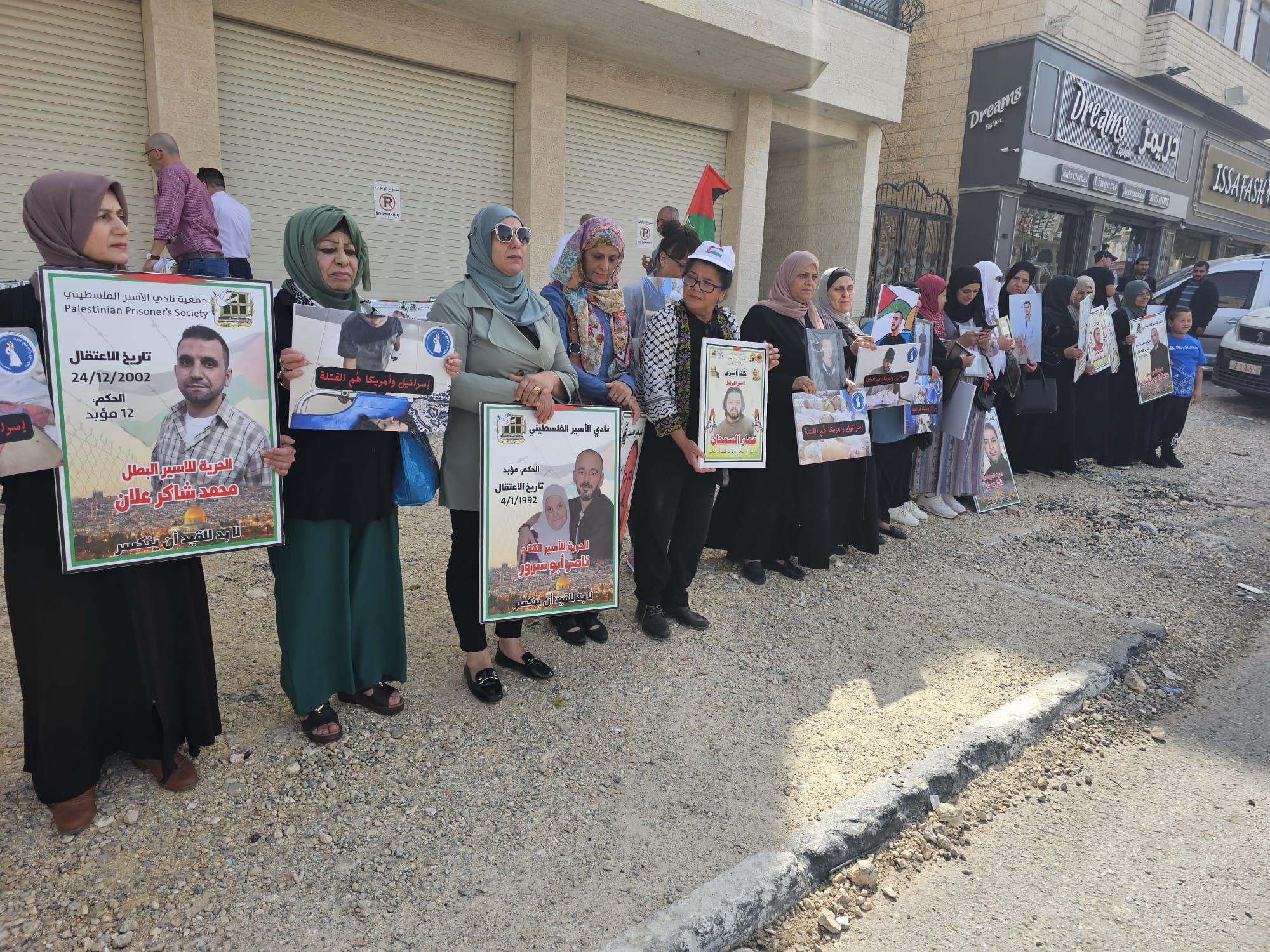 جانب من فعالية الدعم والاسناد التي نظمها نادي الاسير الفلسطيني وهيئة الاسرى وجمعية الاسرى المحررين وبمشاركة أهالي الاسرى ومؤسسات وفعاليات محافظة بيت لحم دعما لصمود الاسرى والاسيرات في سجون الاحتلال و رفضا لجرائم الإبادة الجماعية التي تنفذها طائرات الاحتلال بحق اهلنا في قطاع غزة ورفع المشاركين صور الاسرى وصور شهداء المجازر في غزة