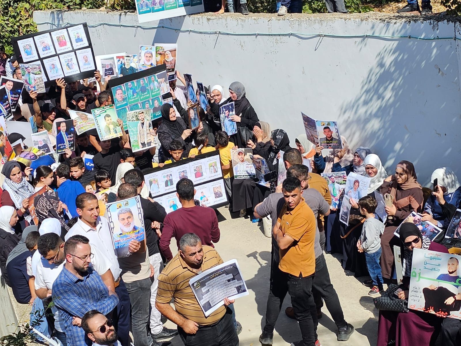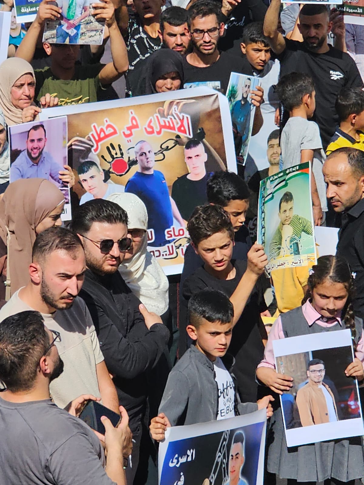 ورفع المشاركون صور شهداء الحركة الاسيرة عمر دراغمة وعرفات حمدان والذين ارتقوا شهداء نتيجة الإهمال الطبي والإجراءات التنكيلية بحقهم داخل زنازين الاحتلال ورفع المشاركون إضافة الى صور أبنائهم صور المجازر في غزة والأطفال الشهداء وصور لمراسل الجزيرة وائل الدحدوح الذ تعرضت عائلته للابادة من قبل طائرات الاحتلال ..
