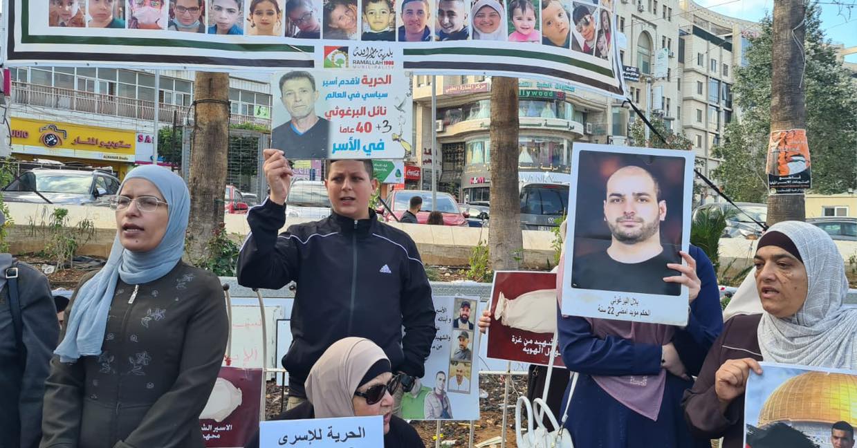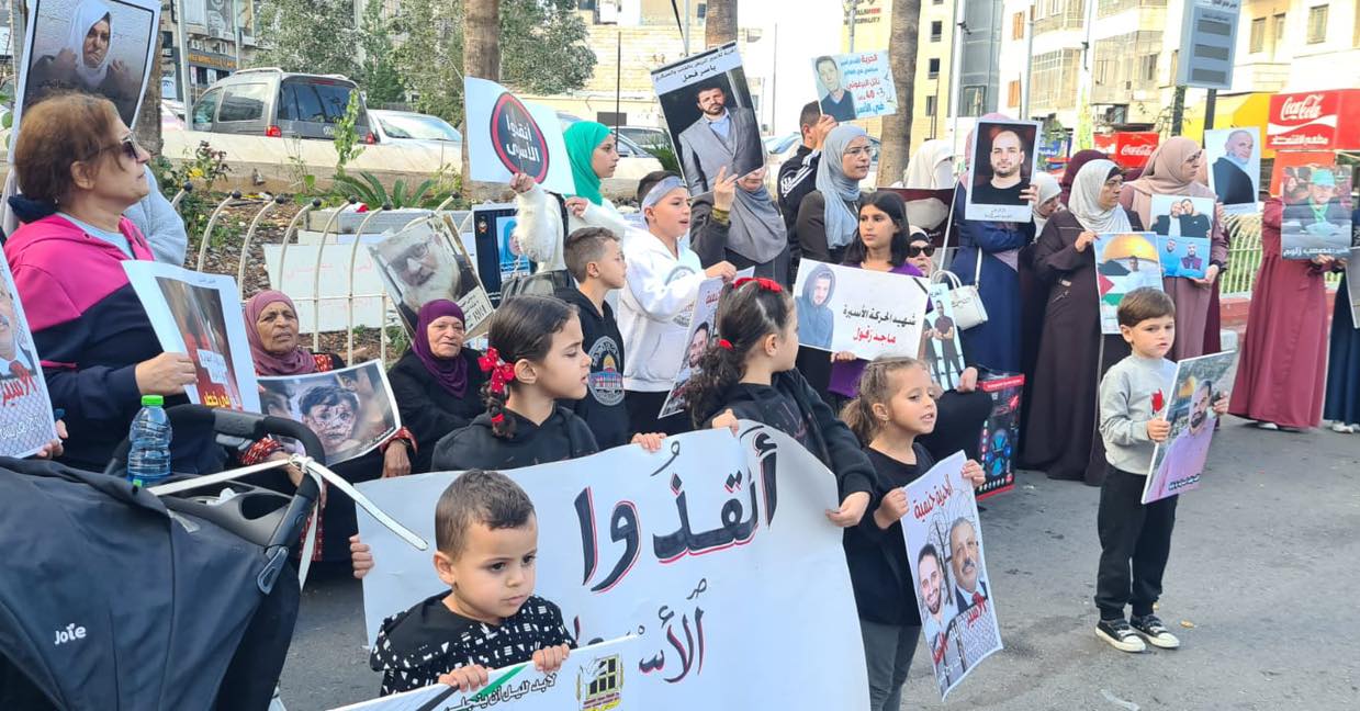 اليوم من أمام دوار المنارة في رام الله: عائلات الأسرى يواصلون تنفيذ وقفات لرفع صوت أبنائهم الأسرى الذين يواجهون عمليات تعذيب وتنكيل مضاعفة بعد السابع من أكتوبر