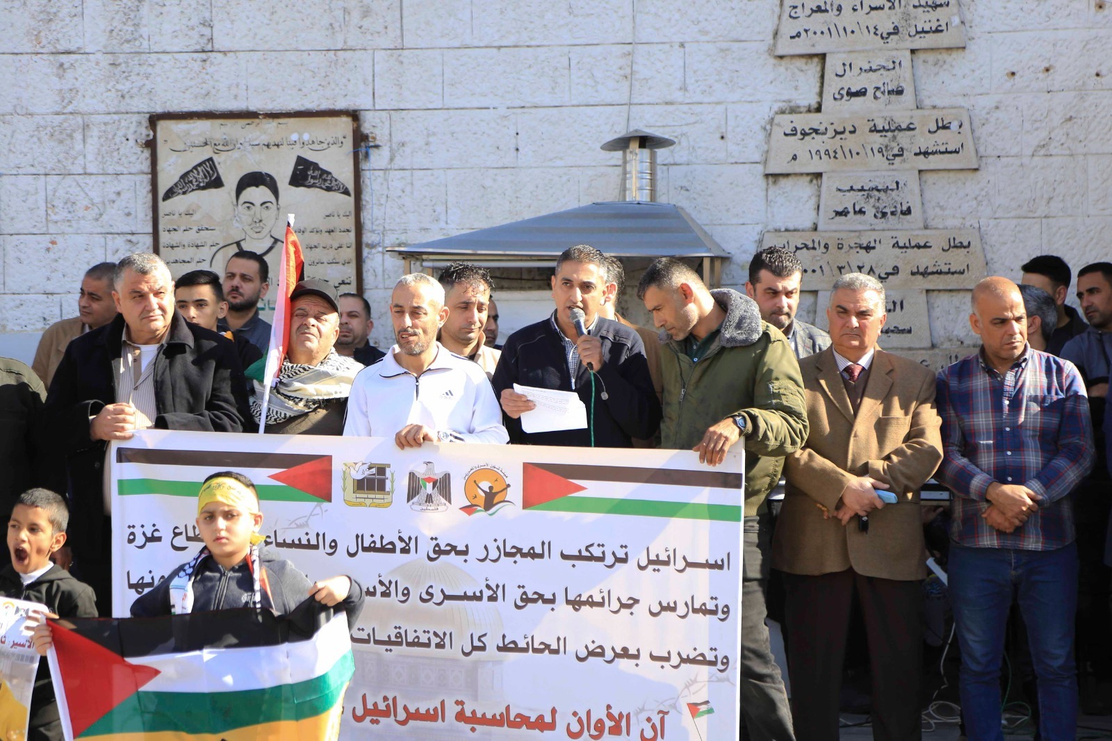 وخلال الوقفة ترحم مسير اعمال المحافظة على ارواح الشهداء الذين سقطوا دفاعا عن الحق الفلسطيني الراسخ، مؤكدا ان ما يحدث في قطاع غزة هو جريمة حرب يقوم بها جيش الارهاب الصهيوني وبدعم من الولايات المتحدة الامريكية وبتواطئ غربي، ووجه التحية الى الاسرى في سجون الاحتلال الذين يعيشون ظروف صعبة في ظل الاستهداف الممنهج من قبل بن جفير وعصابته بحق الاسرى، مشيرا الى جريمة قتل الاسير الشهيد ثائر ابو عصب الذي اغتيل في الاسر بدم بارد، مؤكدا ان هذه الجريمة النكراء والتي يندى لها جبين الانسانية ستبقى ماثلة امام العالم الذي ينادي بالحرية وبحقوق الانسان والذي بقي صامتا حيال ما يجري من جرائم بحق الشعب الفلسطيني الاعزل.