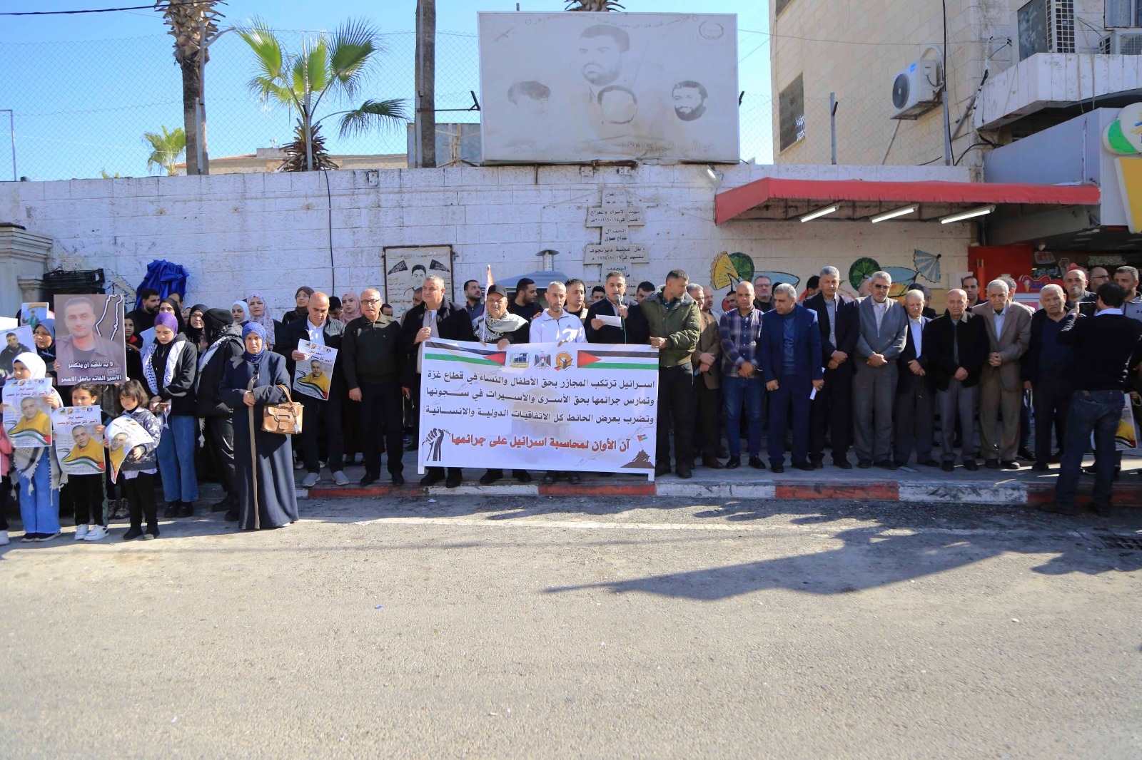 نظمت هيئة شؤون الأسرى والمحررين ونادي الأسير الفلسطيني وحركة التحرير الوطني الفلسطيني فتح/ اقليم قلقيلية والقوى الوطنية وفعاليات المحافظة وقفة منددة باعدام الأسير ثائر سميح ابو عصب والذي استشهد في سجن النقب اثر الاعتداء عليه بالضرب من قبل ادارة السجن، ووفاء لاسرانا واسيراتنا الذين يتعرضون للتنكيل اليومي والقتل والحرمان من ابسط حقوقهم، ورفضا لاستمرار المجازر وحرب الابادة بحق ابناء شعبنا في غزة والضفة والقدس، وذلك اليوم في ميدان الشهيد ابو علي اياد وسط مدينة قلقيلية.