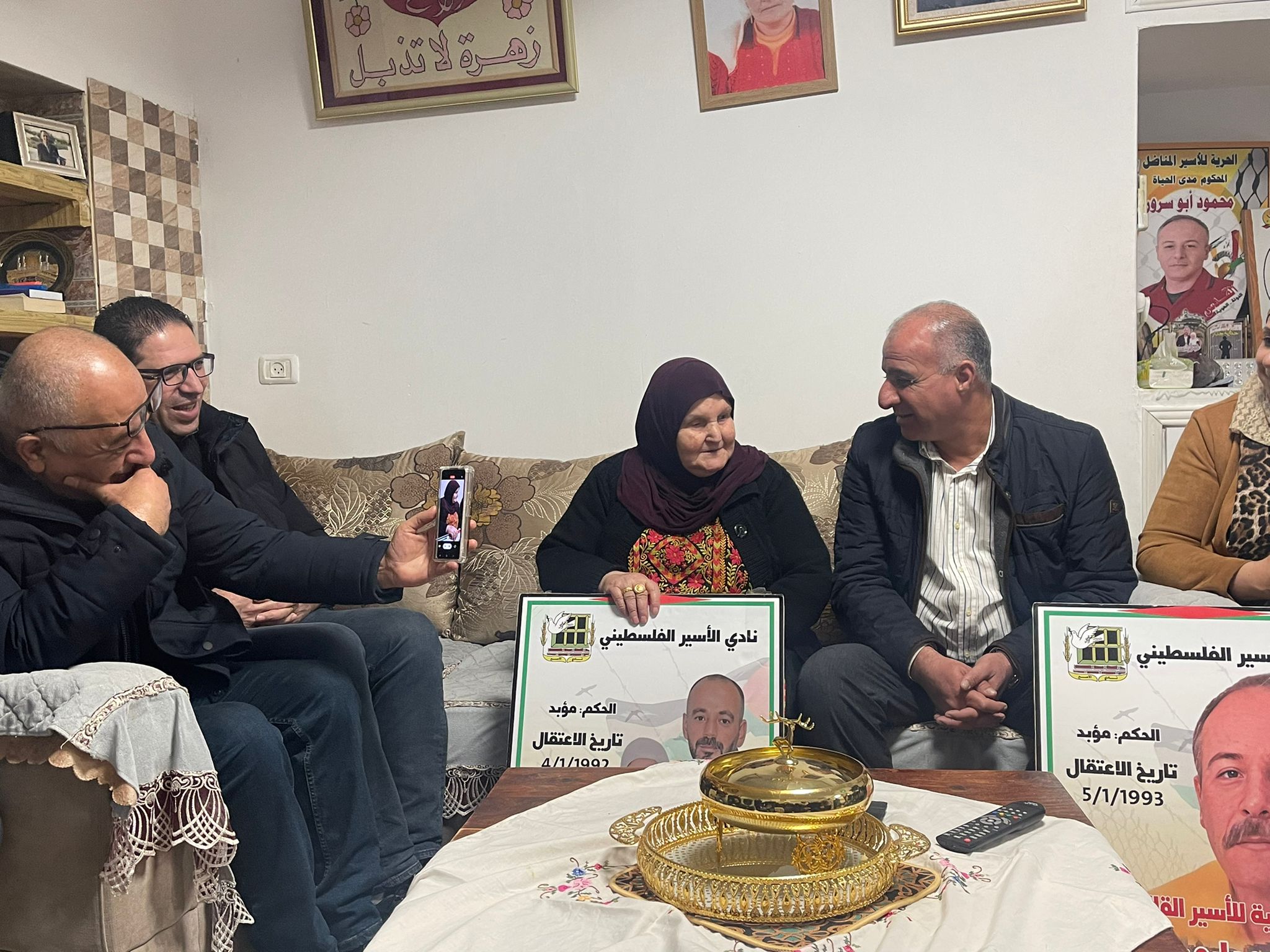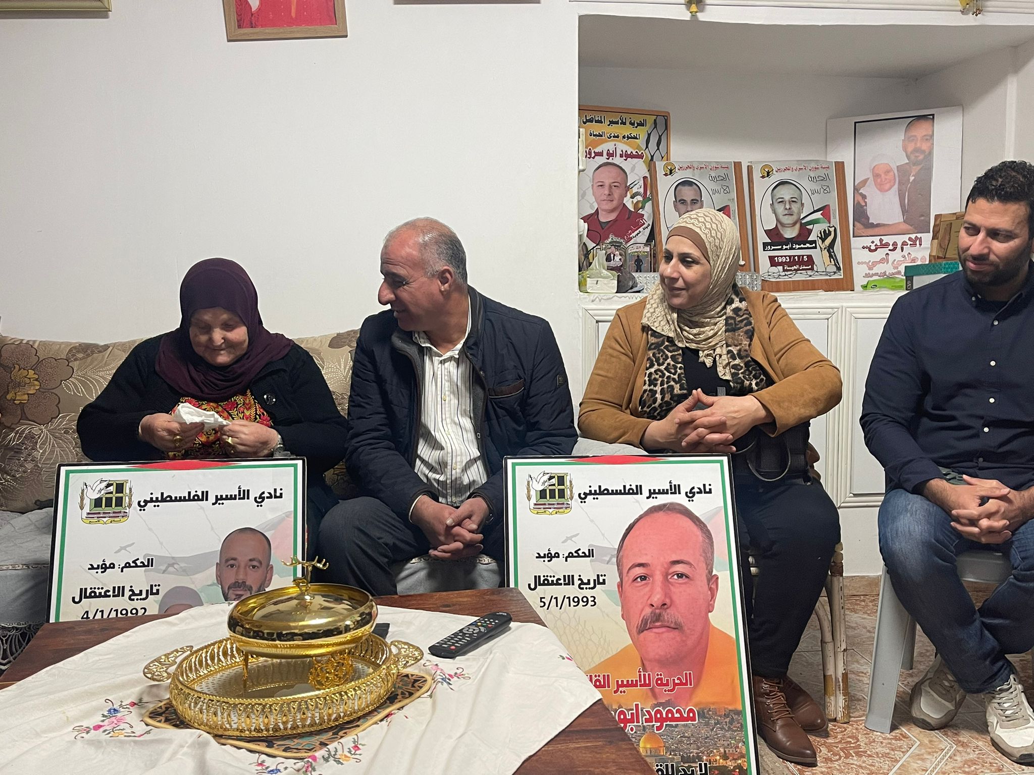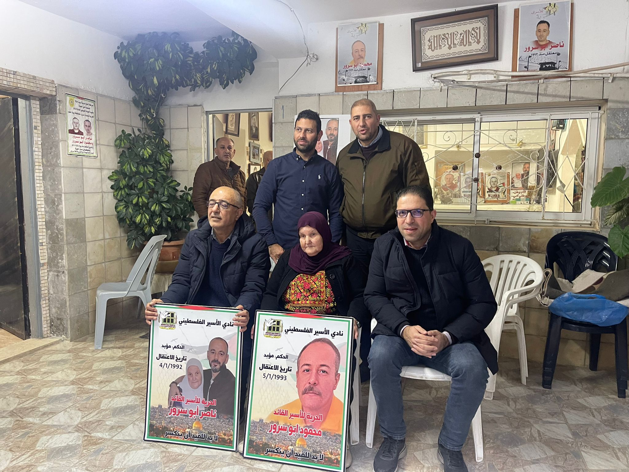 بيت لحم - زار وفد من مؤسسات الاسرى في محافظة بيت لحم واعضاء المجلس الثوري لحركة فتح منزل عائلة الاسيرين ناصر ومحمود ابو سرور بمناسبة دخولهم ٣٢ عام على اعتقالهم في سجون الاحتلال الاسرائيلي حيث التقوا بوالدة الاسير ناصر مزيونة واشقاء الاسير محمود مصطفى واحمد وعبر عن تضامنهم مع الاسرى.