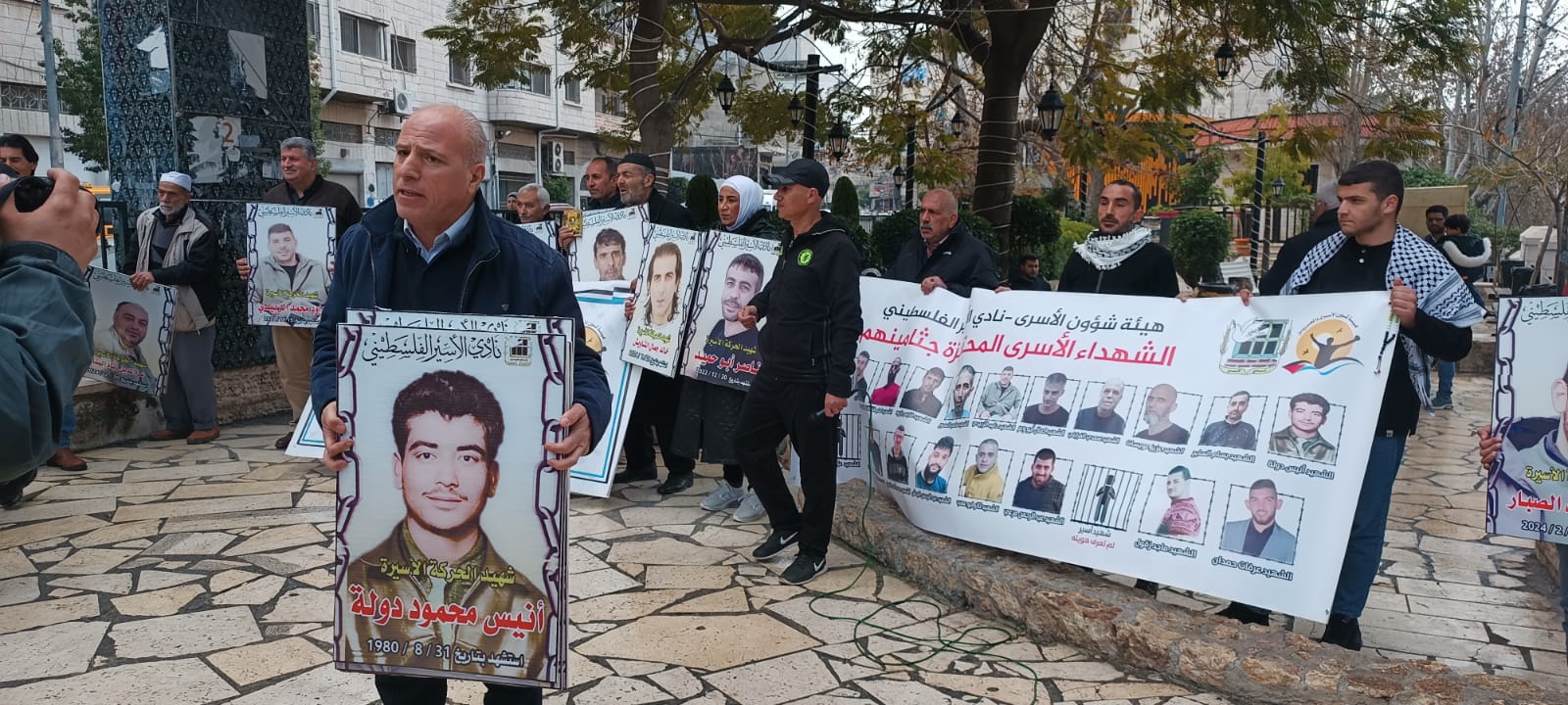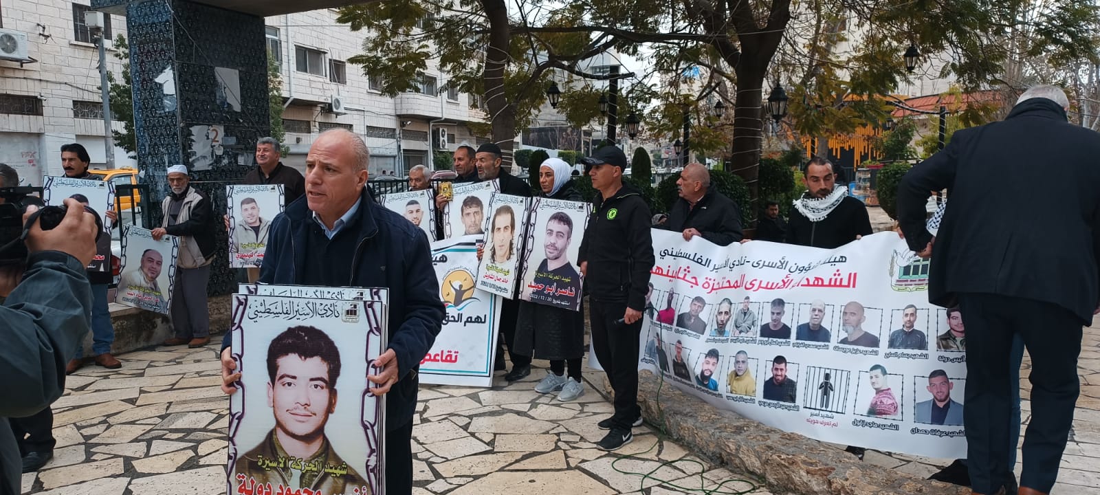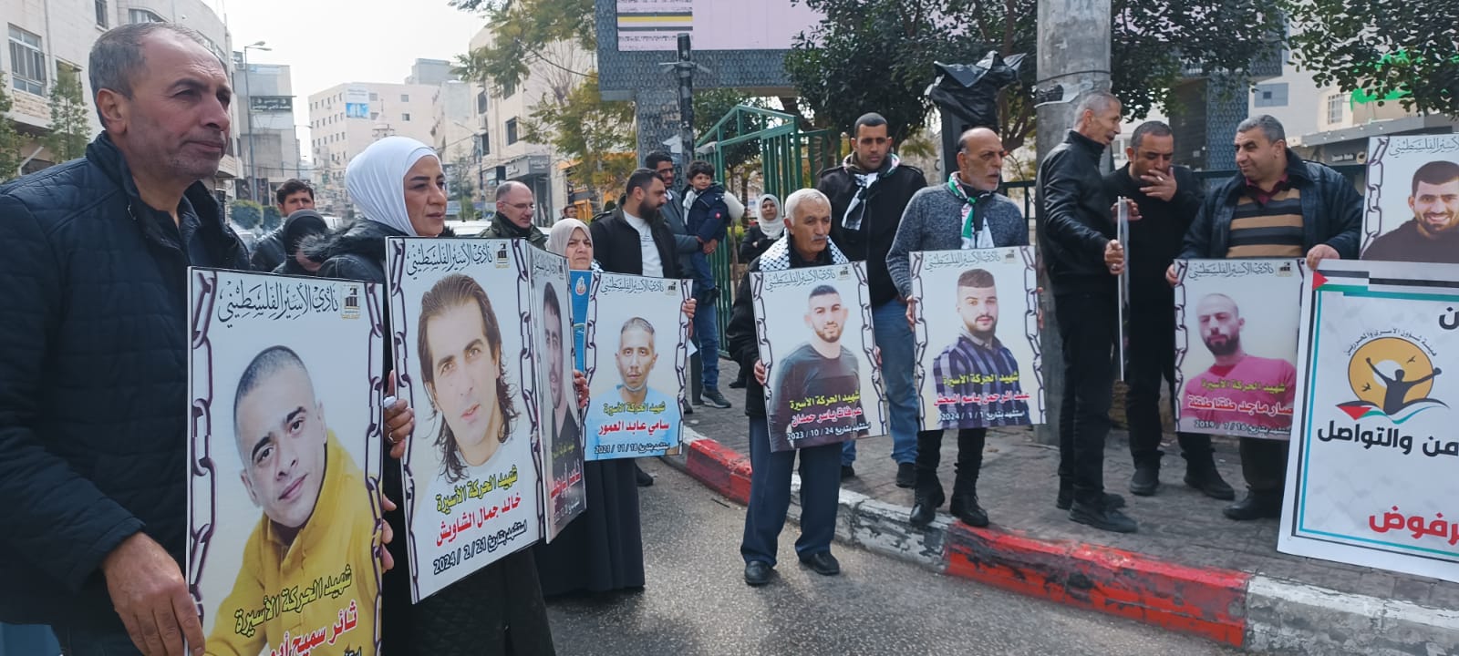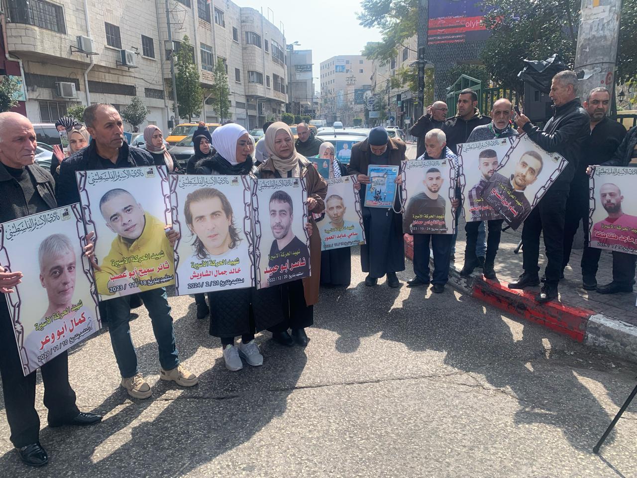 ورفع المشاركون في الوقفة صور الاسرى الشهداء الاسرى المحتجزة جثامينهم في ثلاجات الاحتلال والذين ارتقوا شهداء خاصة بعد السابع من كتوبر والتي تخللها عمليات قمع وتنكيل وتطهير وابادة للأسرى والاسيرات في فترة زمنية قصيرة جدا خلال اربع شهور فقط ..