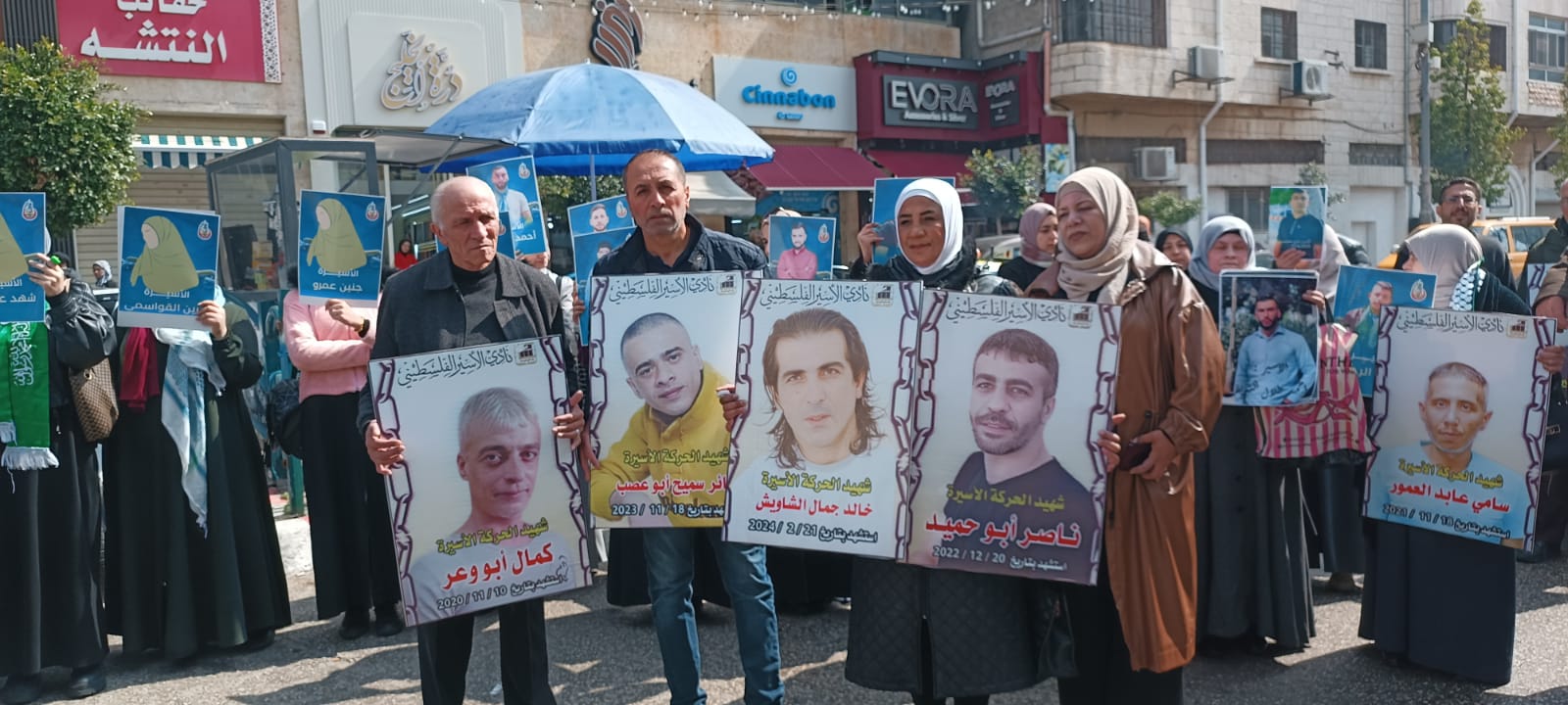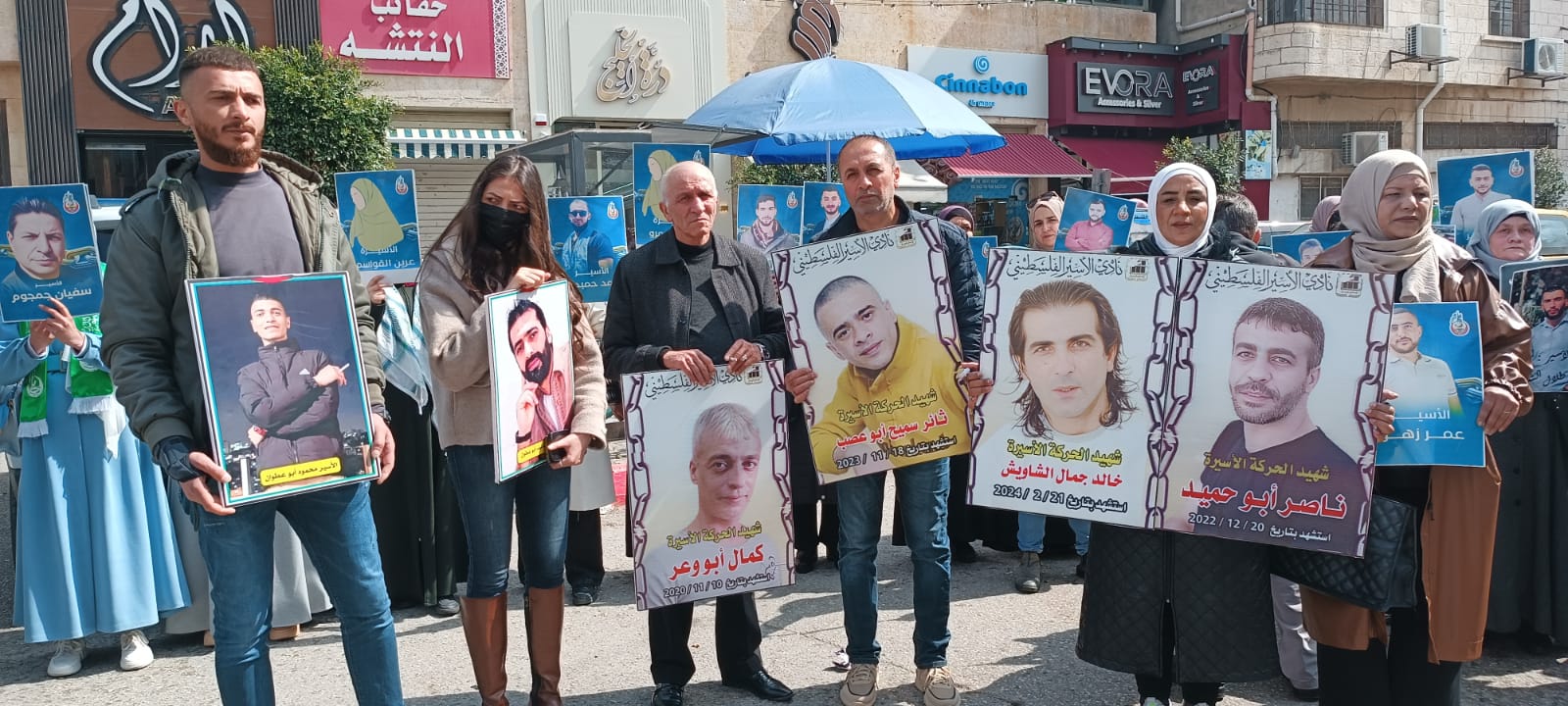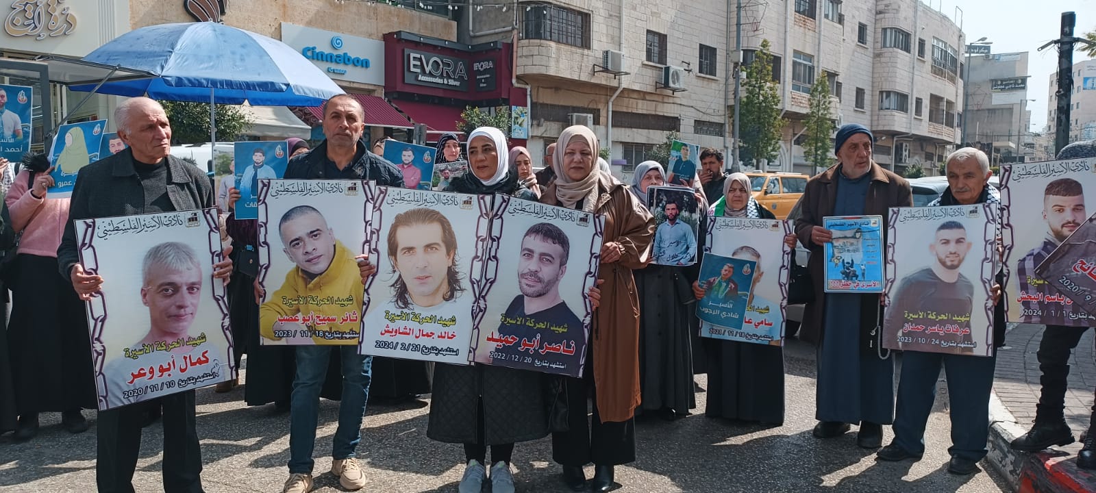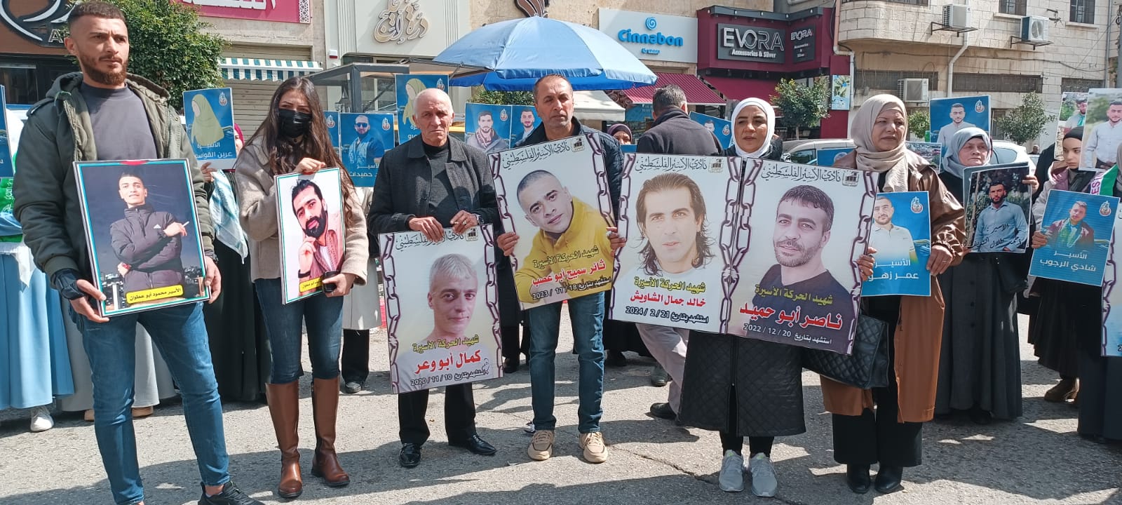 ويافطات منددة بالجريمة المنظمة التي ترتكب بحق الاسرى والاسيرات والتي أوصلت الوضع داخل سجون الاحتلال الى وضع كارثي ينذر بخطر كبير يحدق بأسرانا وأسيراتنا في ظل انشغال العالم بالحرب واستفراد إدارة سجون الاحتلال بهم وصمت مريب للمؤسسات الدولية وشلل تام في دور المنظمة الدولية للصليب الأحمر في متابعة أوضاع الاسرى داخل سجون الاحتلال ...