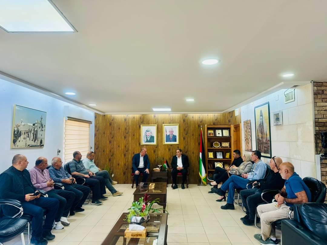 وفد من نادي الاسير وهيئة الاسرى وجمعية الاسرى المحررين يلتقون محافظ بيت لحم الاخ محمد طه ابو عليا ..حيث قدم الاخ عبد الله الزغار ي رئيس ناد الاسير الفلسطيني شرحا حول ظروف المعتقلين في سجون الاحتلال في ظل الظروف الصعبة التي تمر بها الحركة الاسيرة وما ينفذه الاحتلال من اعتدات بحقهم كما تم مناقشة الاستعدادات لإحياء يوم الاسير الفلسطيني الذي يصادف في السابع عشر من نيسان وفي نهاية اللقاء تم تقديم التهاني للمحافظ