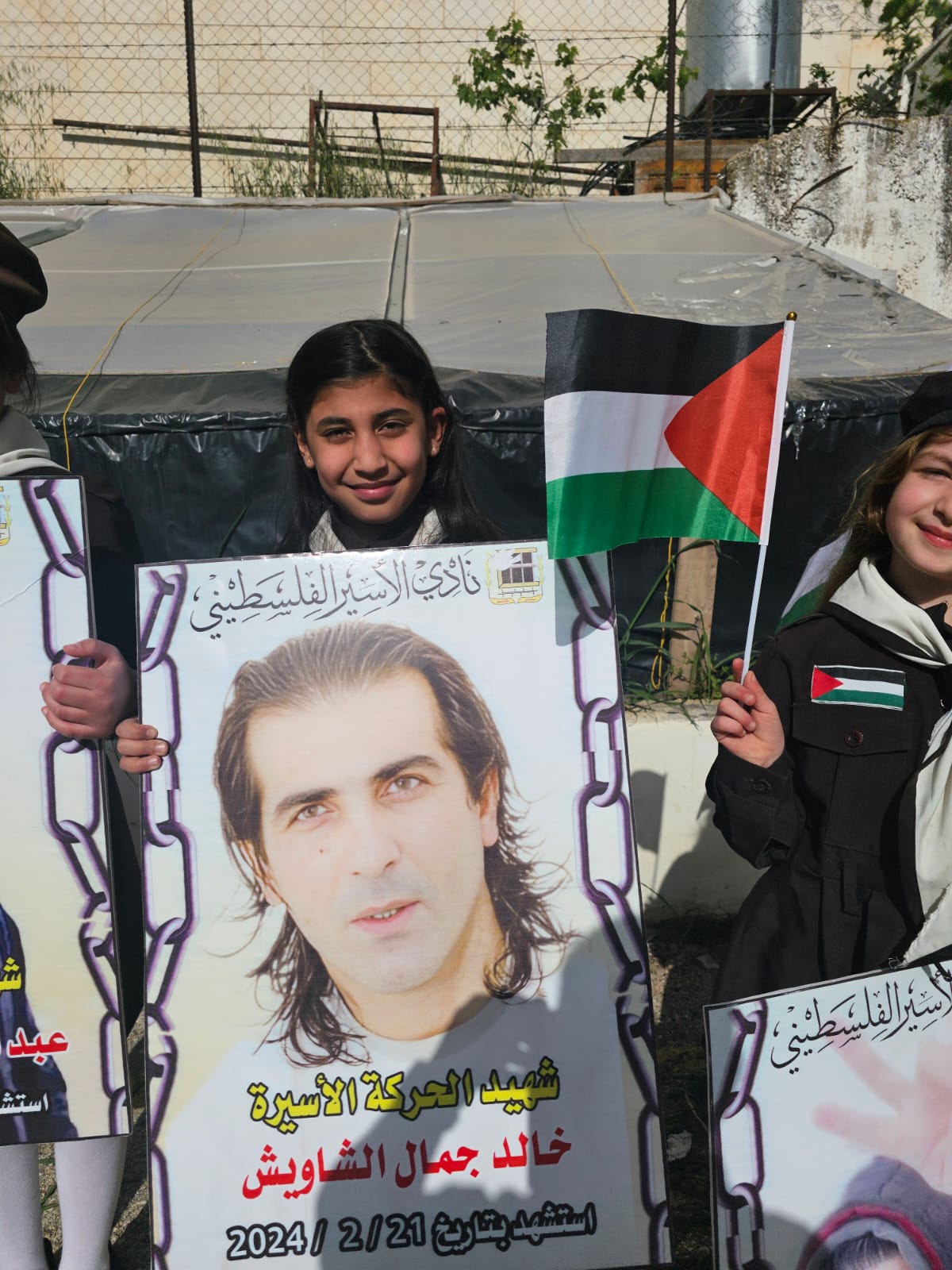 وكانت إدارة المدرسة وطالباتها قد نظمن العديد من الأنشطة التعبيرية والمؤثرة عن كافة الاسرة والاسيرات ونصب خيمة وسط ساحة المدرسة علق بداخلها صور الاسرى والاسيرات وصور شهداء الحركة الاسيرة مع فقرة فنية تضمنت قيام الزهرات برسم صور الاسرى وعلم فلسطين ورسومات مؤثرة عن الاسرى علما ان العشرات من الطالبات اللواتي قدمنا فقرات مؤثرة هن من بنات الاسرى القابعين في سجون الاحتلال .مع رفع صور كافة شهداء الحركة الاسيرة المحتجزة في ثلاجات الاحتلال .
