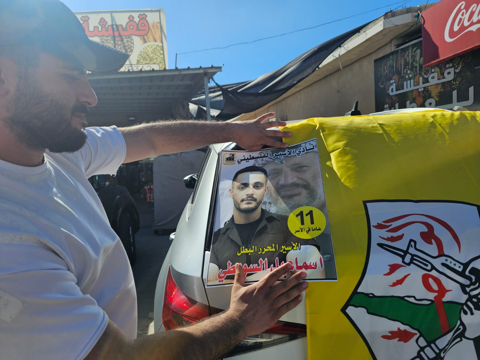 جانب من استقبال نادي الاسير الفلسطيني الاسير المحرر اسماعيل خالد سويطي بعد اعتقال استمر 11عام في سجون الاحتلال