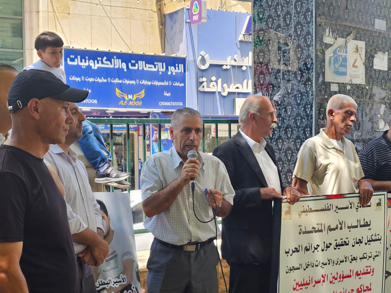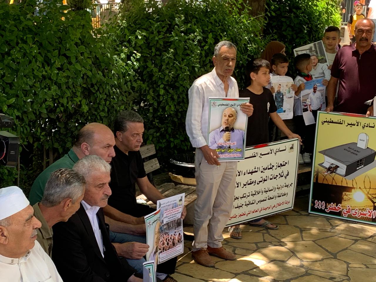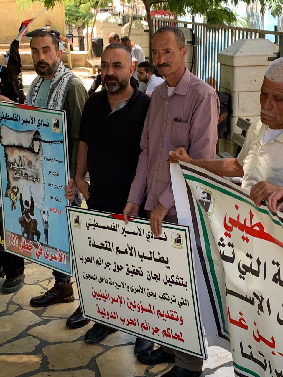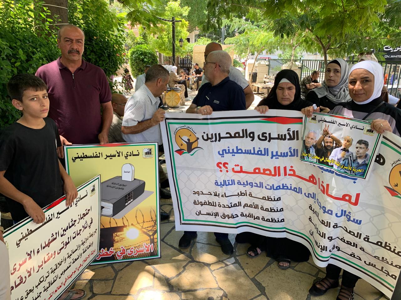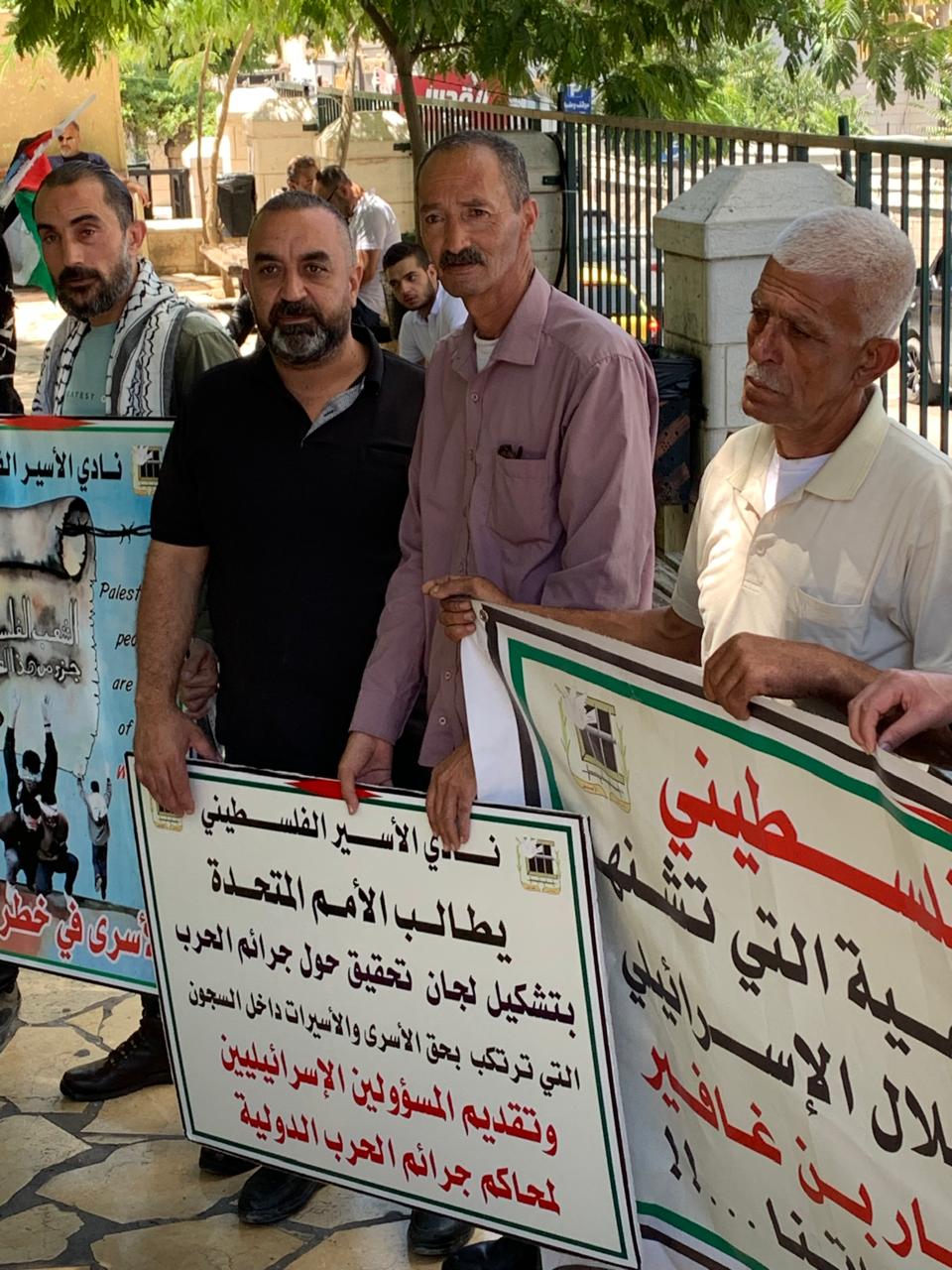 ورفع المشاركون صور الأسرى والأسيرات وشهداء الحركة الأسيرة المحتجزة جثامينهم في ثلاجات الاحتلال، ويافطات كتبت عليها شعارات منددة بالجرائم التي ترتكب بحق الأسرى، خاصة الشهادات التي خرجت من أسرى غزة وما يتعرضون له من عمليات تنكيل وفظائع ترتكب بحقهم.