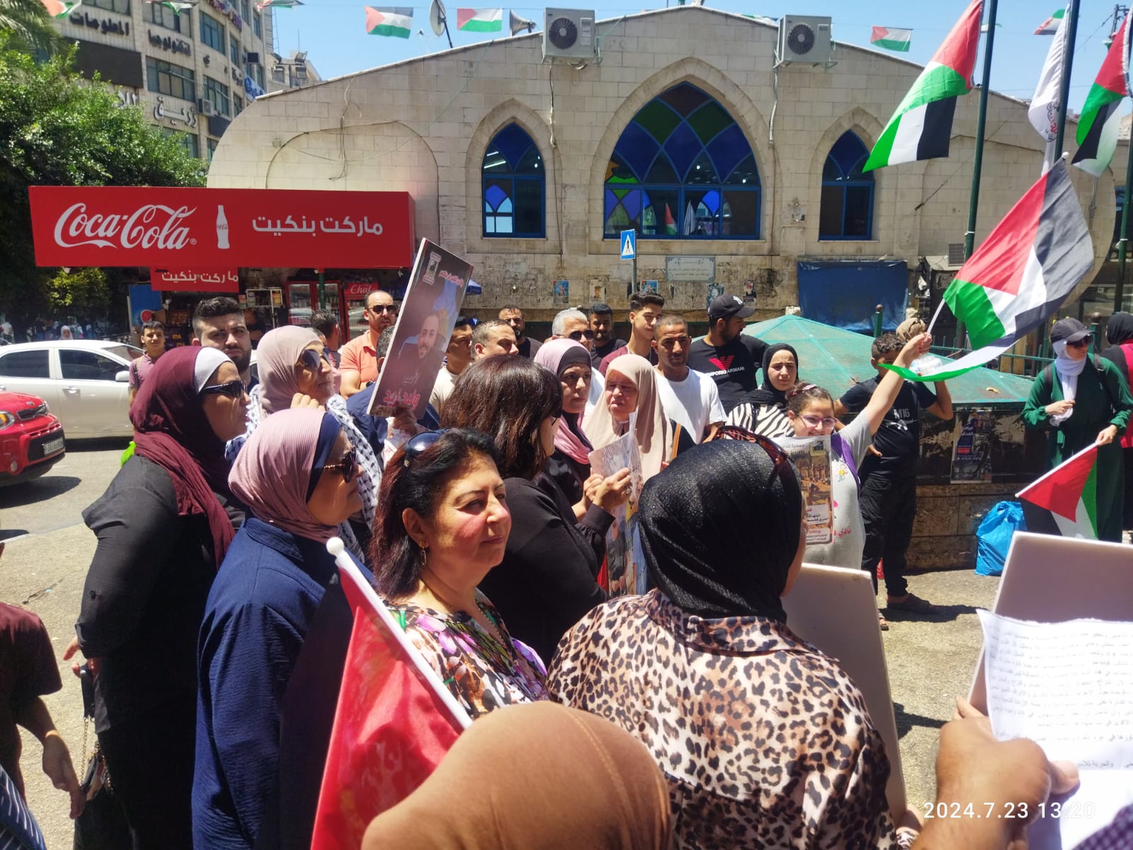 نادي الأسير الفلسطيني واللجنة الوطنية لدعم الأسرى ينظمون وقفة لنصرة غزة والأسرى اليوم في ميدان الشهداء في محافظة نابلس