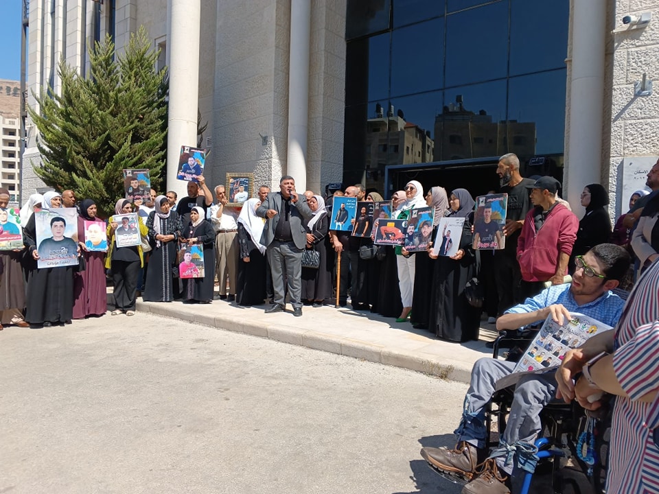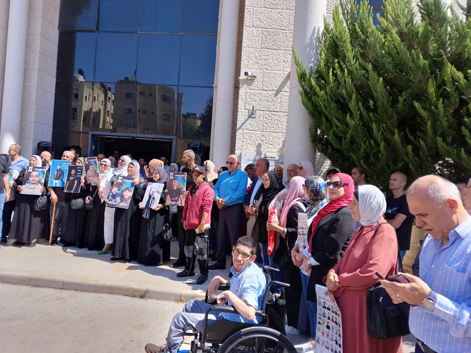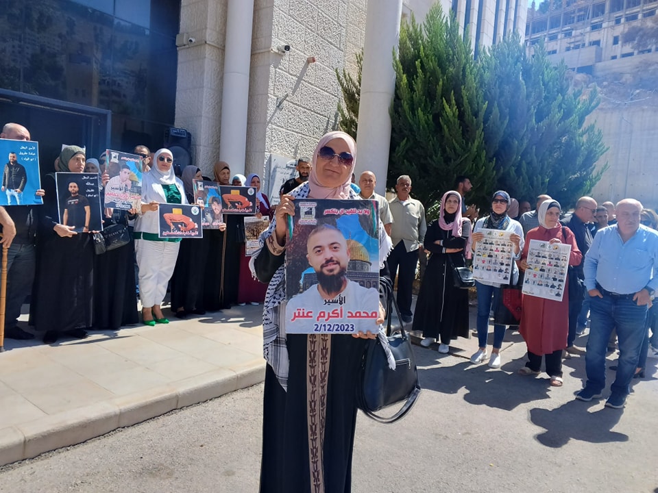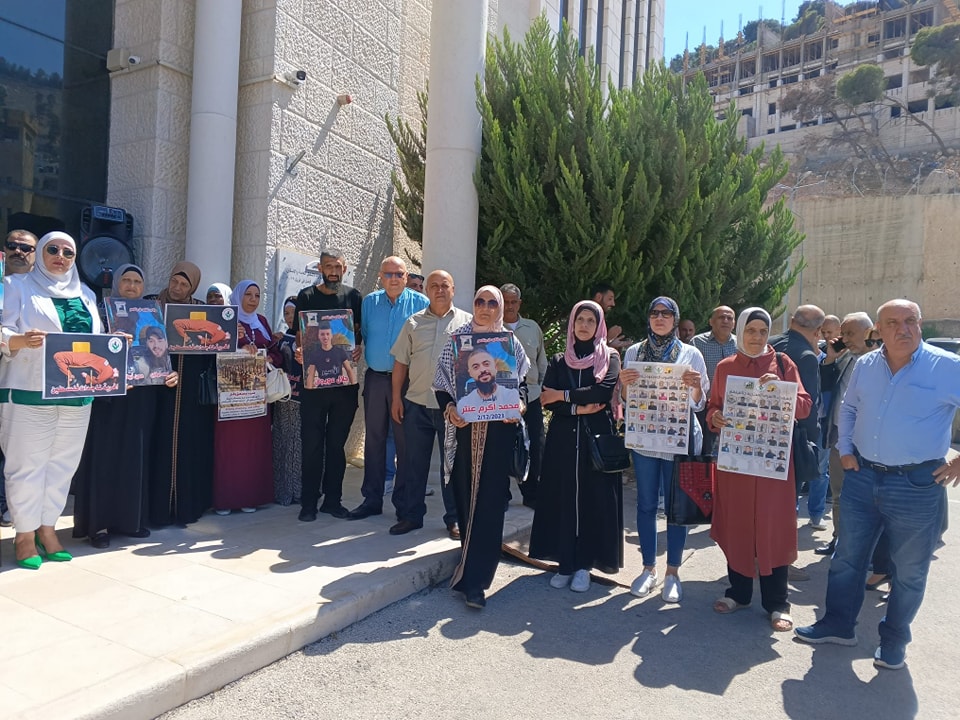 جانب من مشاركة نادي الأسير الفلسطيني في الوقفة الاسنادية نصرة لغزة وللاسرى في ساحة محافظة نابلس