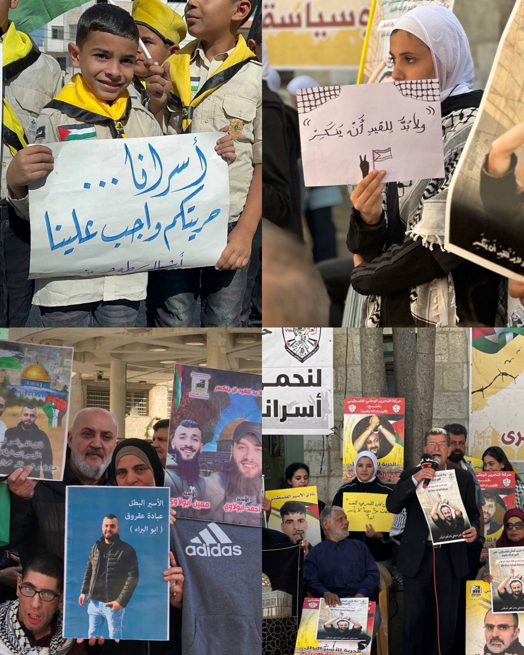 👈 •عائلات الأسرى ومؤسسات الأسرى ومختلف الفعاليات المحلية في محافظات (نابلس، وجنين، ورام الله والبيرة، وطولكرم)، ينفذون وقفات للمطالبة بوقف حرب الإبادة المستمرة بحق شعبنا في غزة والمطالبة بوقف الجرائم بحق أسرانا في سجون الاحتلال.