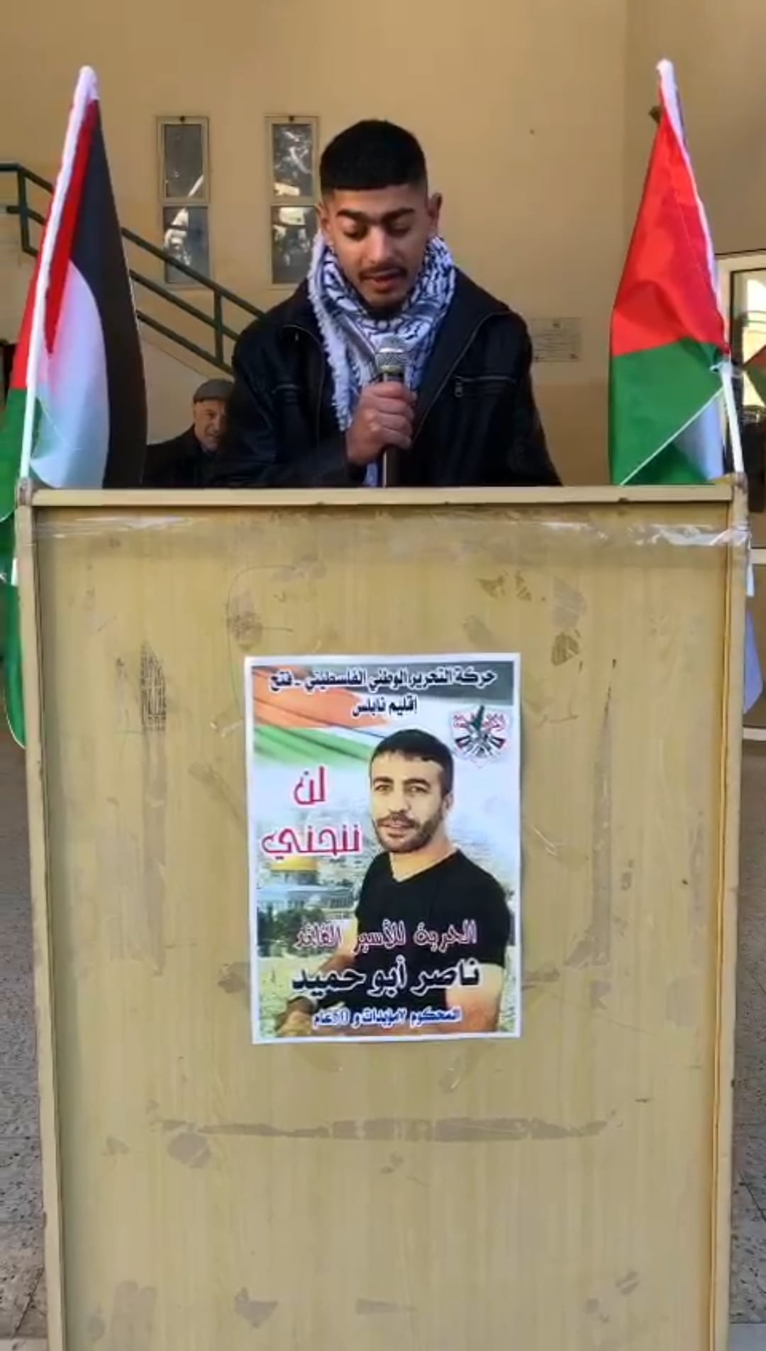 لجنة الشبيبة الثانوية في مدرسة الصلاحية نابلس تنظم وقفه تضامنية مع الأسير البطل ناصر ابو حميد.