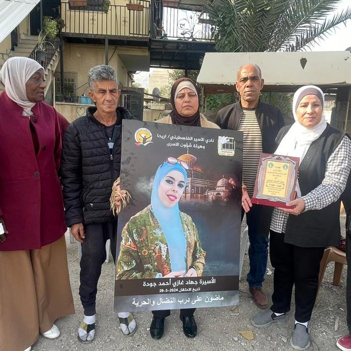 أريحا: نظم نادي الأسير وهيئة شؤون الأسرى والاتحاد العام للمرأة، وممثلي الفصائل زيارة إلى عائلة الأسيرة جهاد غازي جودة من أريحا والمعتقلة في سجون الاحتلال منذ ستة أشهر وهي موقفة حتى اليوم في سجن (الدامون).