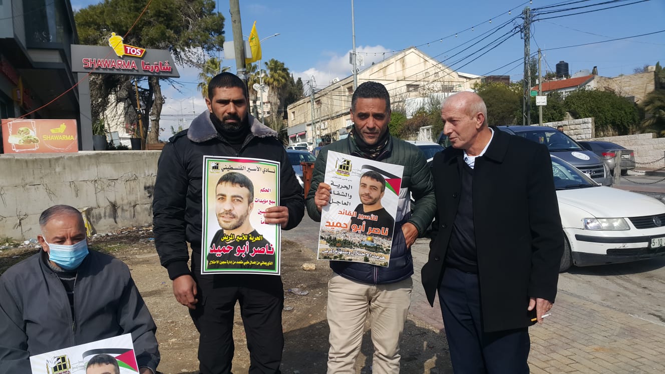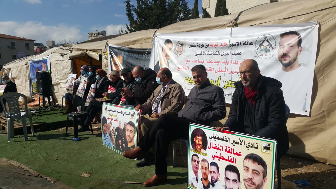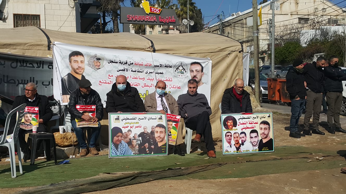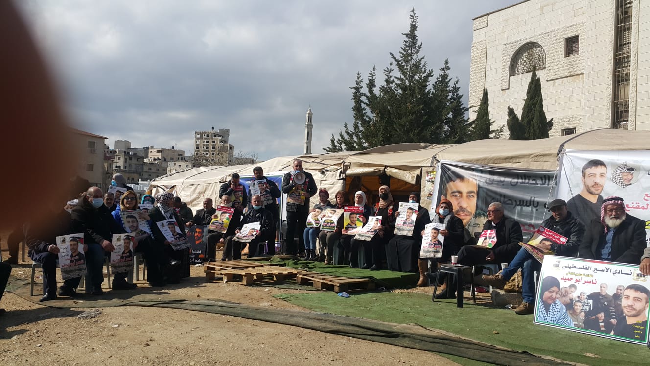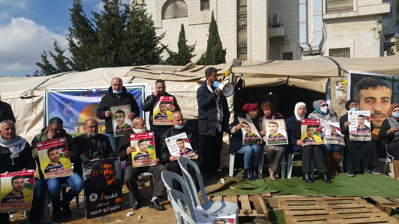 صور | من فعاليات الوقفة التضامنية لدعم ومساندة الأسير ناصر أبو حميد أمام خيمة الاعتصام في مخيم الأمعري رام الله.