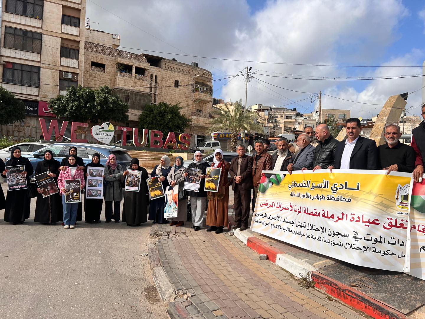 طوباس اليوم | من الوقفة التي دعت إليها مؤسسات الأسرى والقوى أمام مقار اللجنة الدولية للصليب الأحمر في مختلف المحافظات، نصرةً لأسرى الحرّيّة وكسراً للعجز، وللمطالبة بالضغط لاستعادة الصليب الأحمر دوره في زيارة الأسرى، والسماح لعائلاتهم بزيارتهم، ورفضًا للإبادة المستمرة بحقهم، ولتوجهات الاحتلال المتسارعة نحو إقرار وتنفيذ قانون إعدام الأسرى.