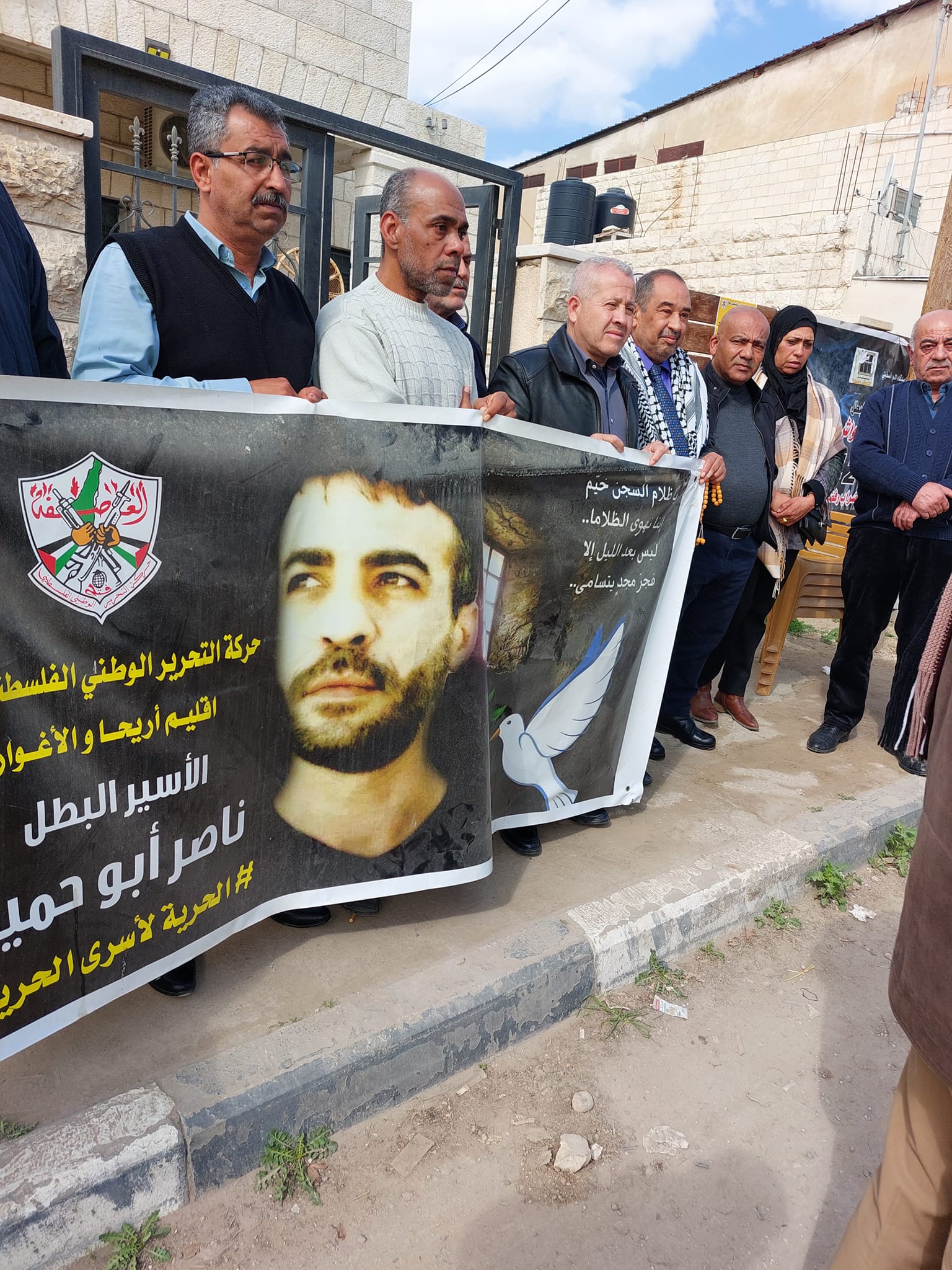 بحضور نادي الأسير وهيئة شؤون الأسرى ودائرة الأسرى وذوي الشهداء والجرحى في المكتب التنفيذي للجان الشعبيه وكذلك الاخ صائب نظيف عضو المحكمة الحركية والمجلس الثوري والمؤسسه الأمنيه ومنظمات المجتمع المدني وفصائل منظمة التحرير الفلسطينيه يشاركون في الحملة الشعبية للافراج عن أسرانا البواسل حتى نيل الحرية والاستقلال واقامة الدولة الفلسطينية المستقلة وعاصمتها القدس الشريف. وناشد المعتصمون المجتمع الدولي بالضغط على الإحتلال بالامتثال للقوانين والشرائع الدولية. واعتبار الاحتلال باطل من أساسه. وحيا نادي الأسير صمود اسرانا البواسل في وجه الإحتلال. وحيا كذلك المؤسسات المشاركه في اسناد اسرانا البواسل. وتحدث الأخ إياد نصر عضو المجلس الثوري لحركة فتح مؤكدا على عدالة قضيتنا والتضحيه من اجل حرية اسرانا وان فتح رائدة المشروع الوطني وتحت قيادة الأخ الرئيس ابو مازن حفظه الله. وأضاف نصر ان الأسرى والشهداء والجرحى مشاعل حريه على درب الزعيم الخالد ياسر عرفات.