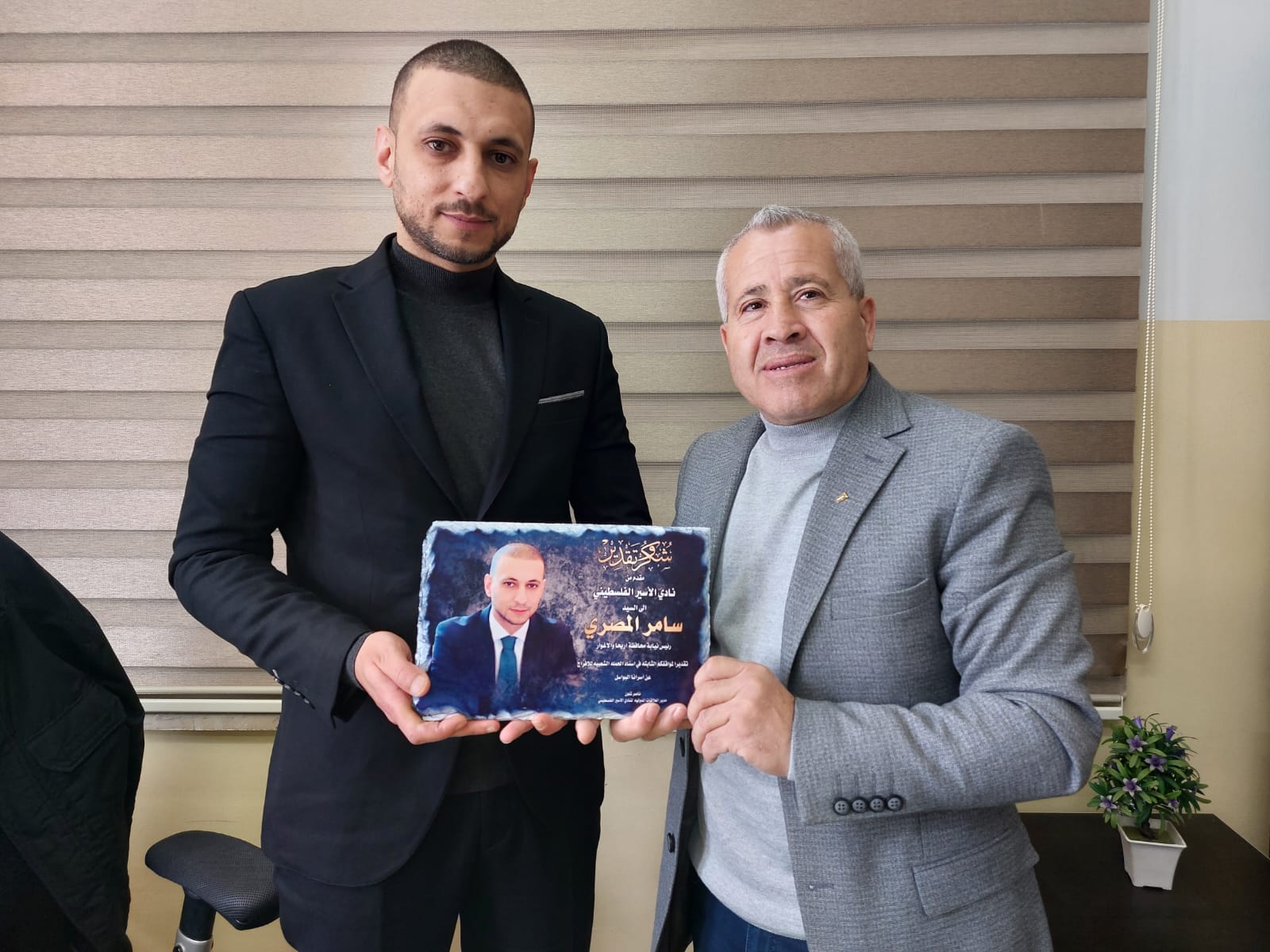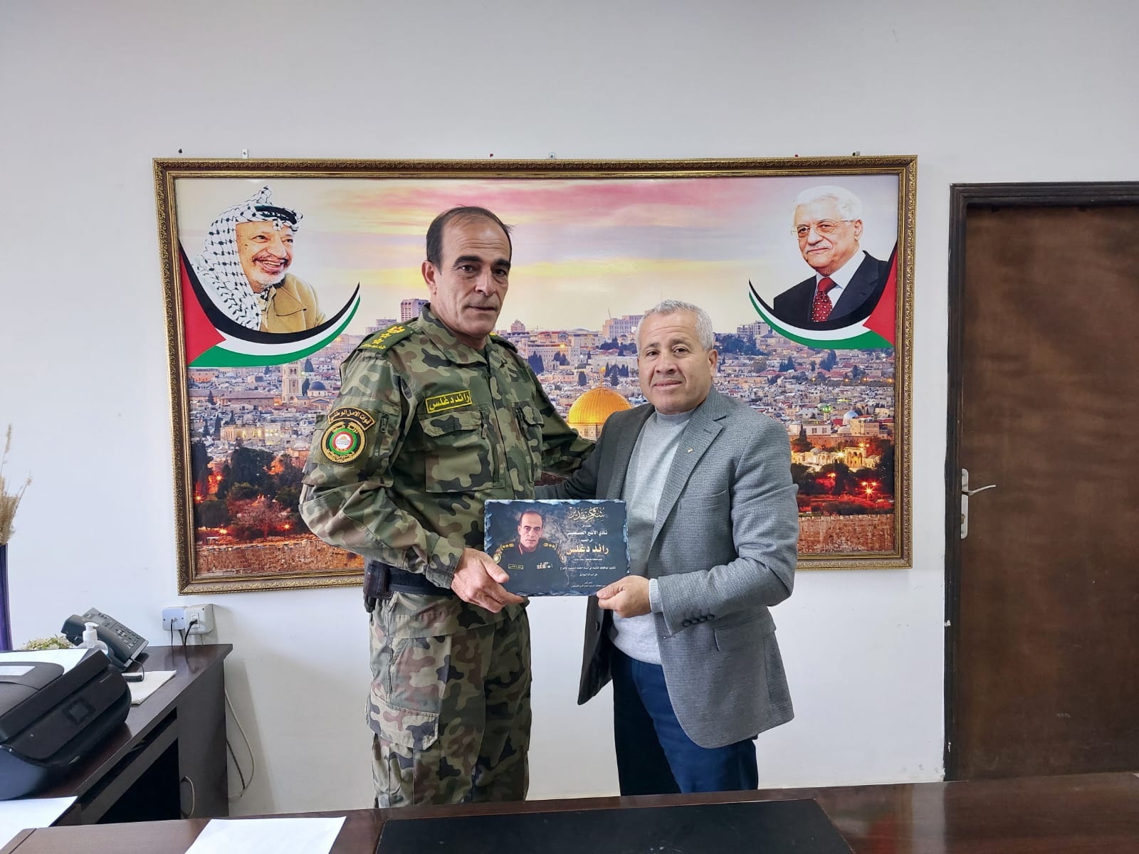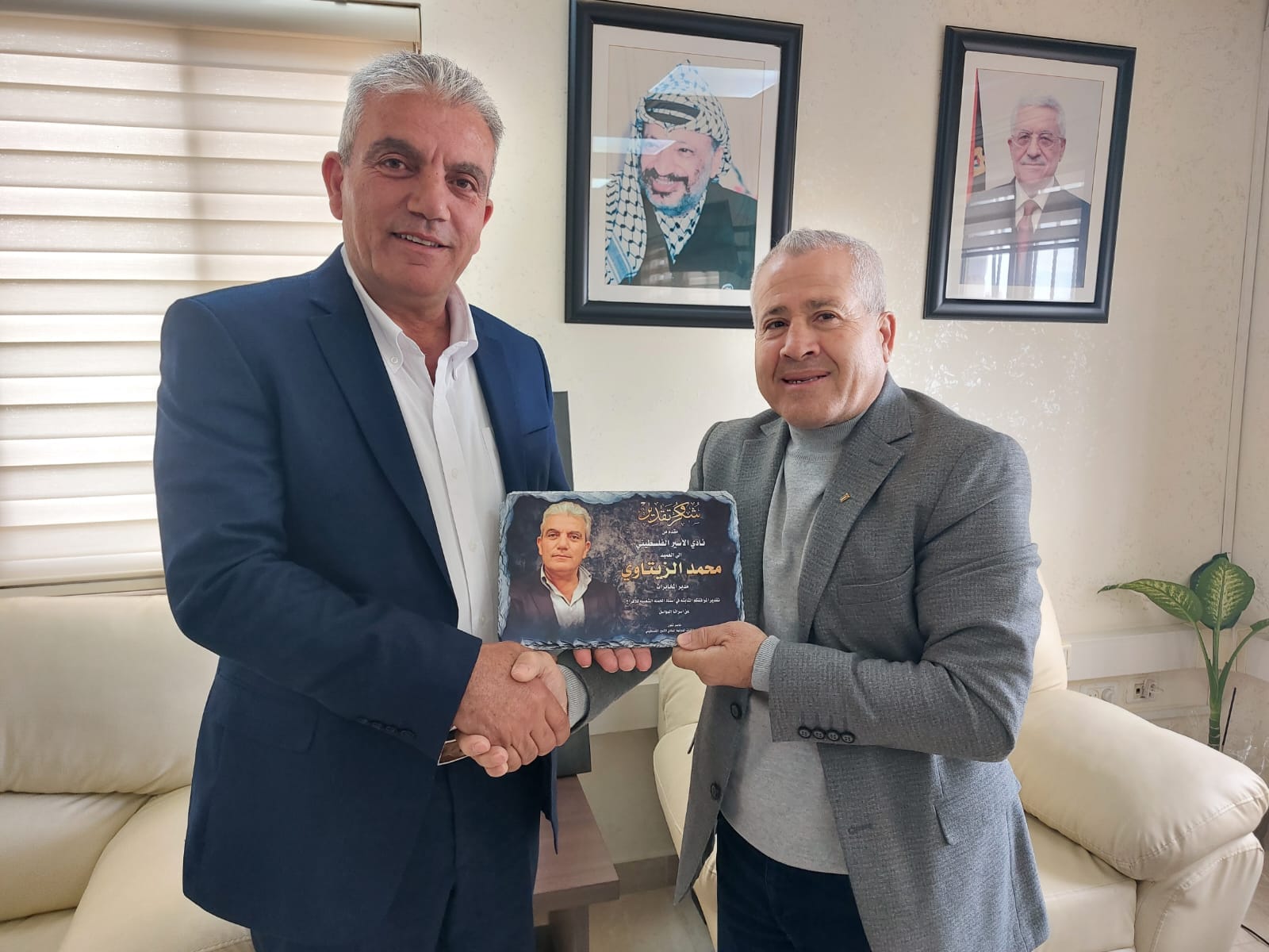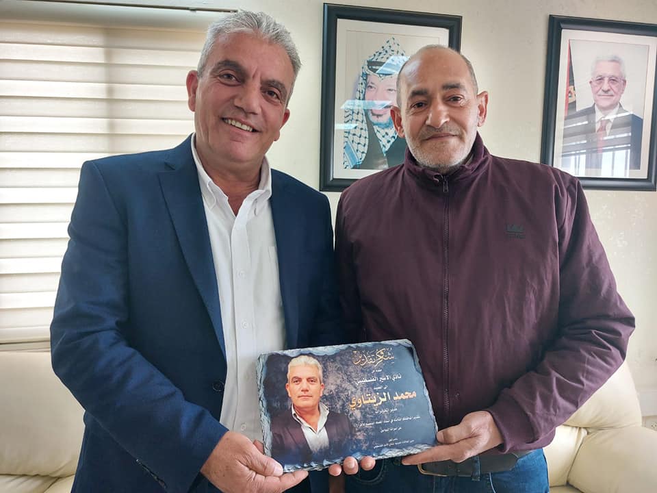 الأخ ناصر شلون مدير دائرة العلاقات الدولية والأخ عيد حافظ مدير فرع نادي الأسير الفلسطيني في محافظة أريحا ينقلون تحيات الأخ قدوره فارس ومجلس ادارة النادي لقادة ومنتسبي الأجهزة الأمنية.