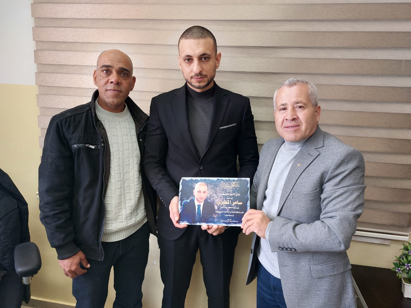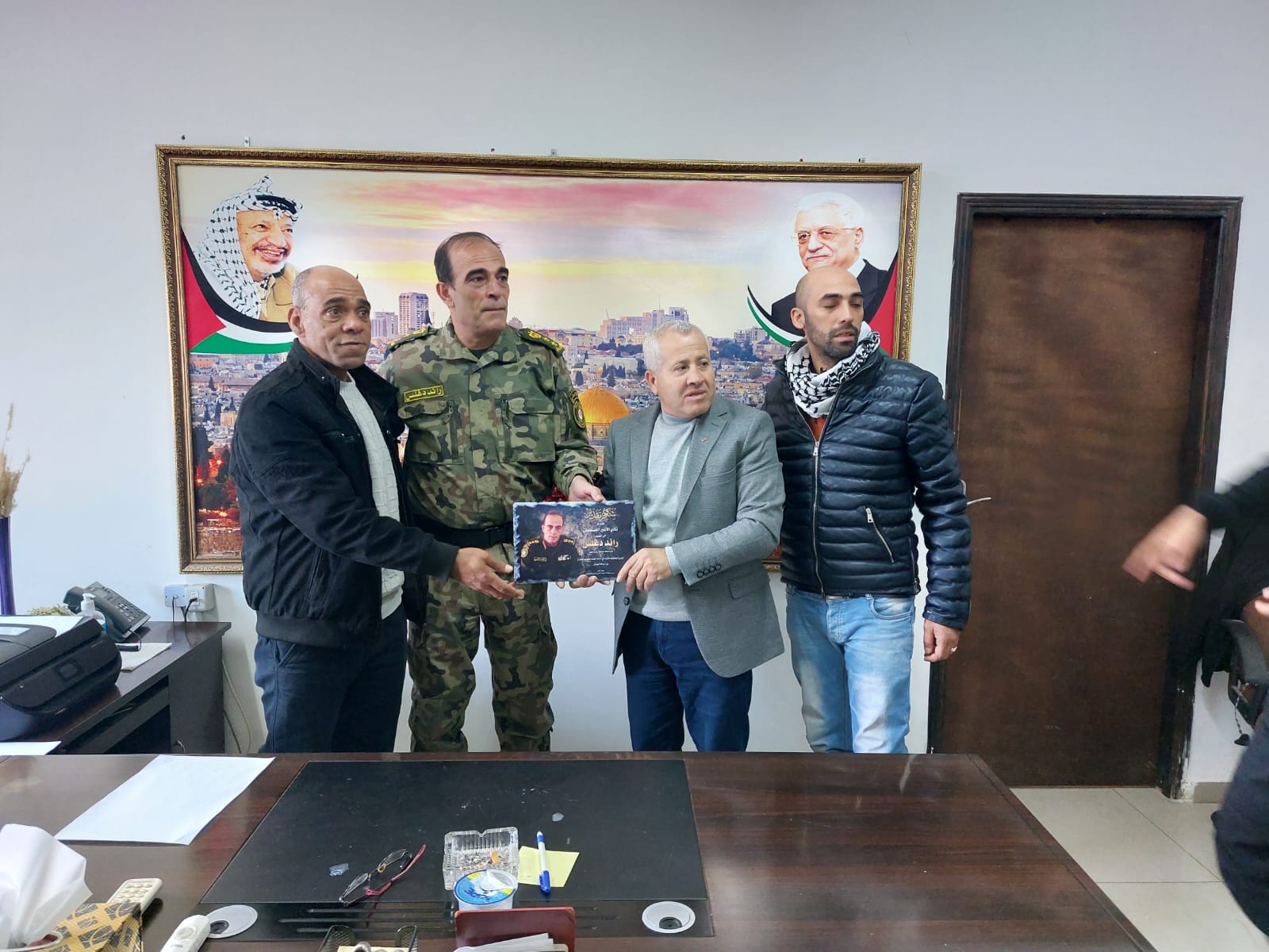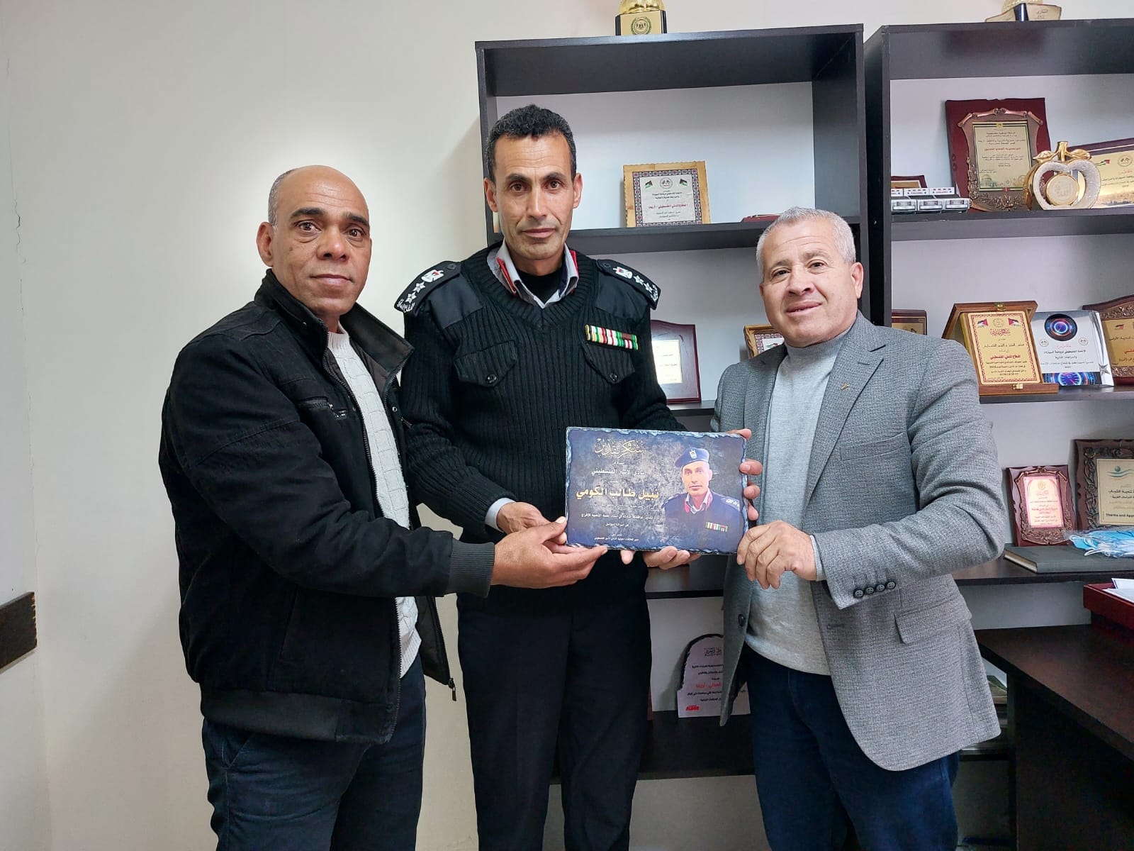 الأخ ناصر شلون مدير دائرة العلاقات الدولية والأخ عيد حافظ مدير فرع نادي الأسير الفلسطيني في محافظة أريحا ينقلون تحيات الأخ قدوره فارس ومجلس ادارة النادي لقادة ومنتسبي الأجهزة الأمنية.