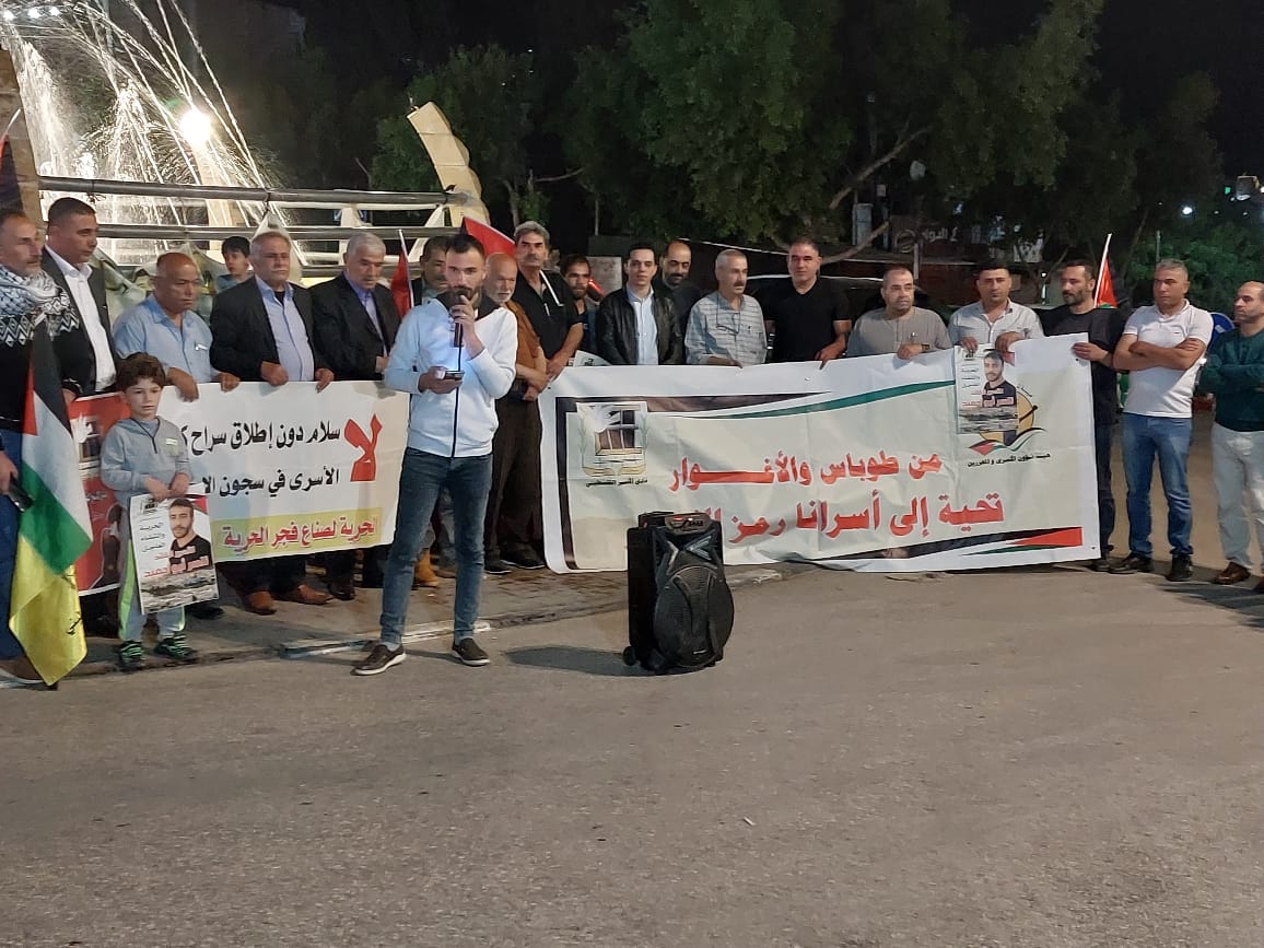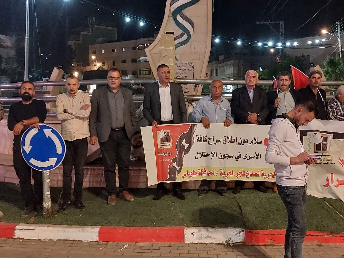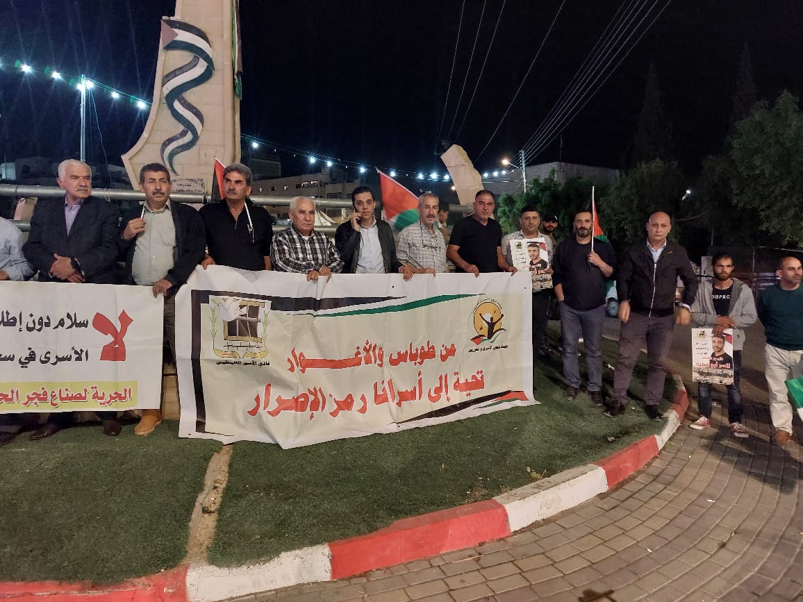 محافظه طوباس، وقفة دعم واسناد لاسرانا بيوم الاسير التي نظمها نادي الأسير الفلسطيني وهيئة شؤون الأسرى والمحررين ولجنة التنسيق الفصائلي في محافظةطوباس والاغوار الشمالية