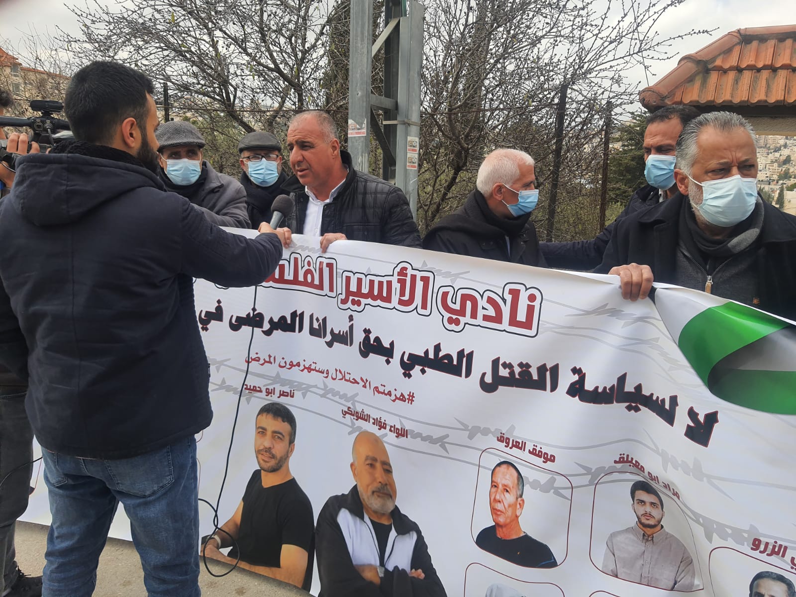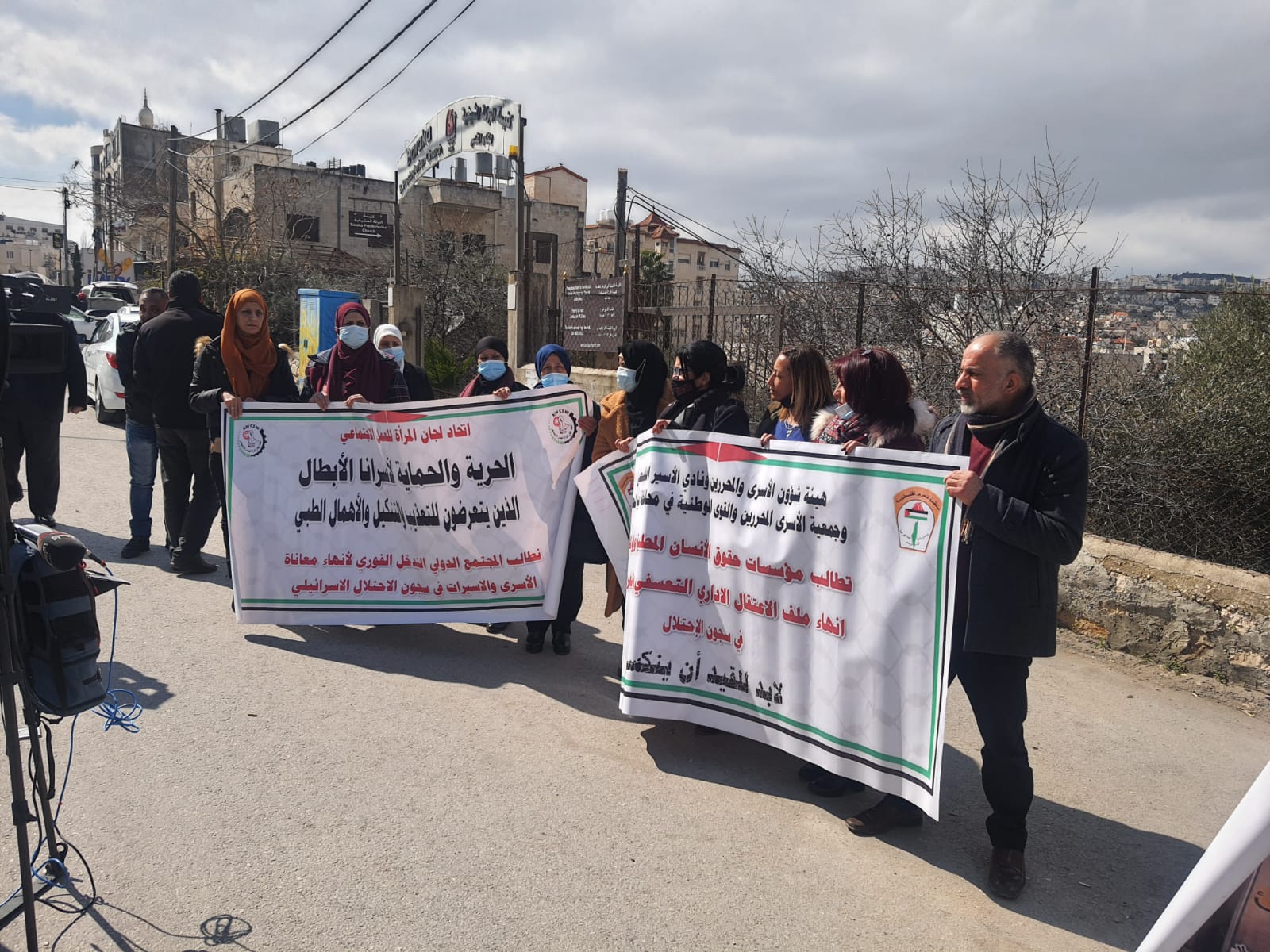 تلبة لنداء الحركة الاسيرة في سجون الاحتلال نظم نادي الاسير الفلسطيني و هيئة الاسرى و جمعية الاسرى المحررين و القوى الوطنية في محافظة بيت لحم وقفة الدعم و الإسناد للاسرى داخل سجون الاحتلال الذين يتعرضون الى حرب شرسة و عدوان على حقوقهم الإنسانية التي كلها القانون الدولي