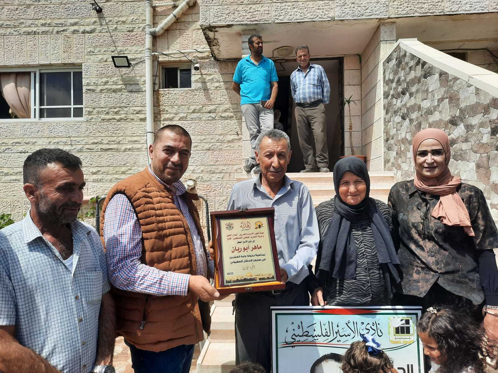 بمناسبة دخول الاسيرين رأفت الجنازرة وماهر ابو ريان عامهم العشرين في سجون الاحتلال نادي الاسير الفلسطيني وهيئة شؤون الاسرى شمال الخليل وحركة فتح يكرمون ذويهم وفاء لهم