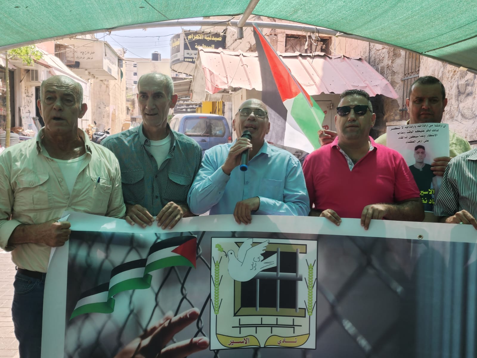 من الوقفة الاسنادية مع اسرانا التي نظمها نادي الأسير الفلسطيني وهيئه شؤون الأسرى والمحررين في محافظه جنين