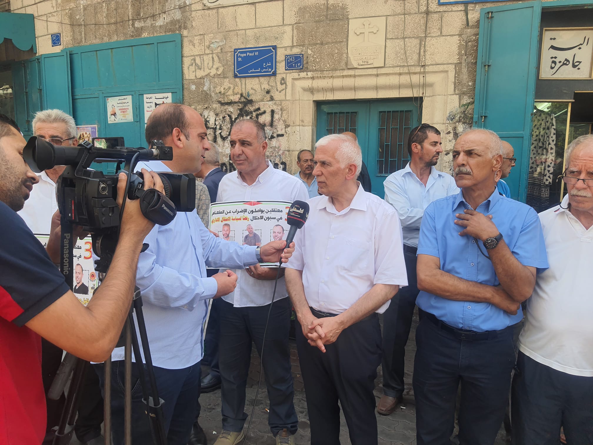 نظمت القوى الوطنية ونادي الاسير وهيئة الاسرى وجمعية الاسرى المحررين وبمشاركة العشرات من اهالي الاسرى والاسرى المحررين والمؤسسات الوطنية الاهلية في محافظة بيت لحم وقفة دعم واسناد للاسرى في سجون الاحتلال الذين يتاهبون لخوض اضراب عن الطعام ضد اجرات إدارة السجون مساء اليوم
