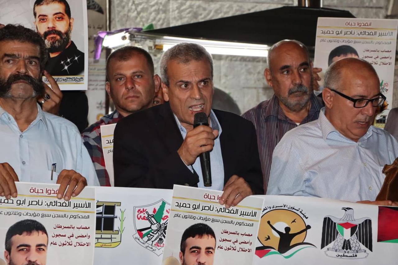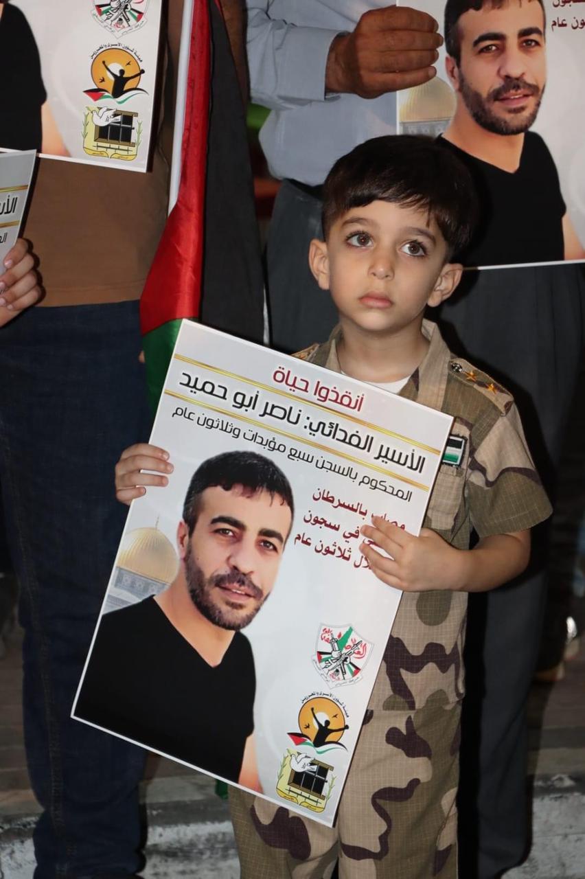 من الوقفه التضامنية مع الاسير ناصر ابو حميد بميدان الشهيد ابو علي اياد/ قلقيلية