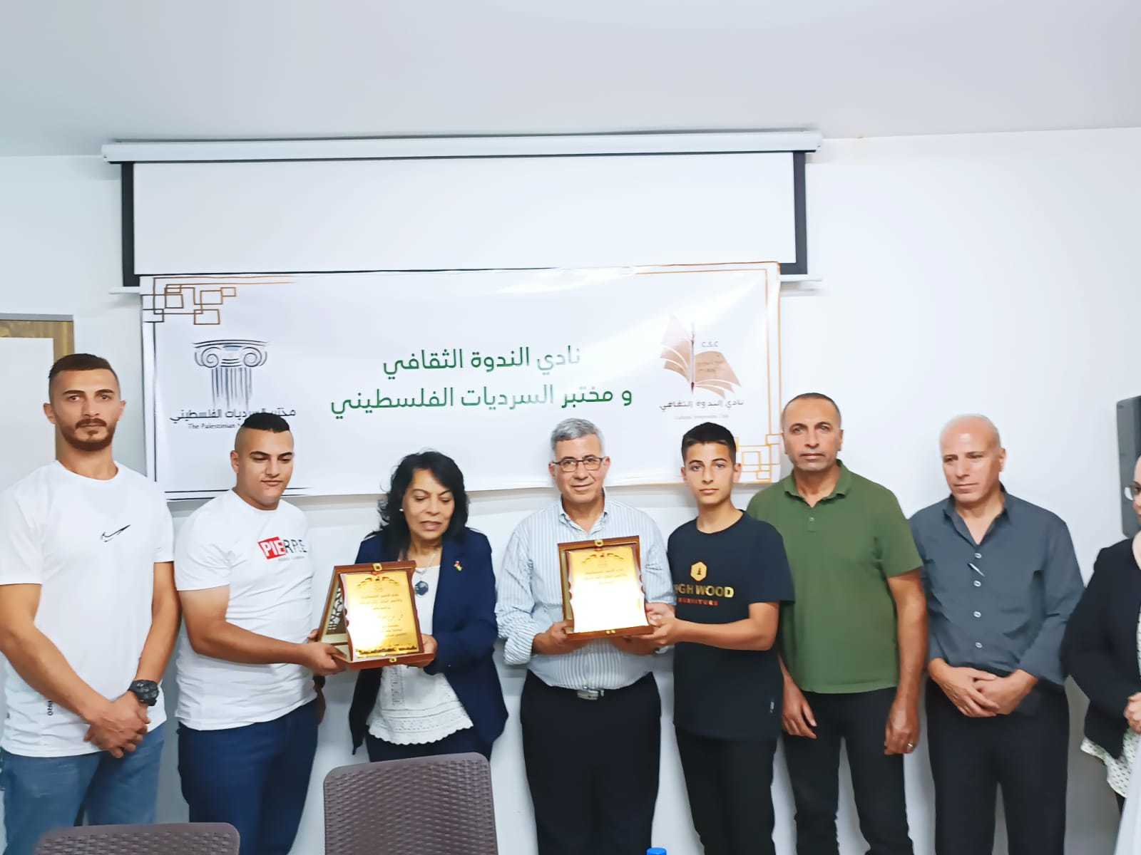 وقام امجد النجار وحسام ابو علان ممثلا عن نادي الاسير الفلسطيني والاسيرين المحررين جهاد الشحاتيت والغضنفر ابو عطوان وبناء على تكليف من الاسرى ( راتب حريبات ، خليل ابو عرام ، معتز الهيموني وايمن الشرباتي بتتقديم دروع تكريمية للكاتبين حسن عبادي وفراس حج محمد تقديرا لدعمهم الدائم والمتواصل لابداعات الاسرى داخل السجون .
