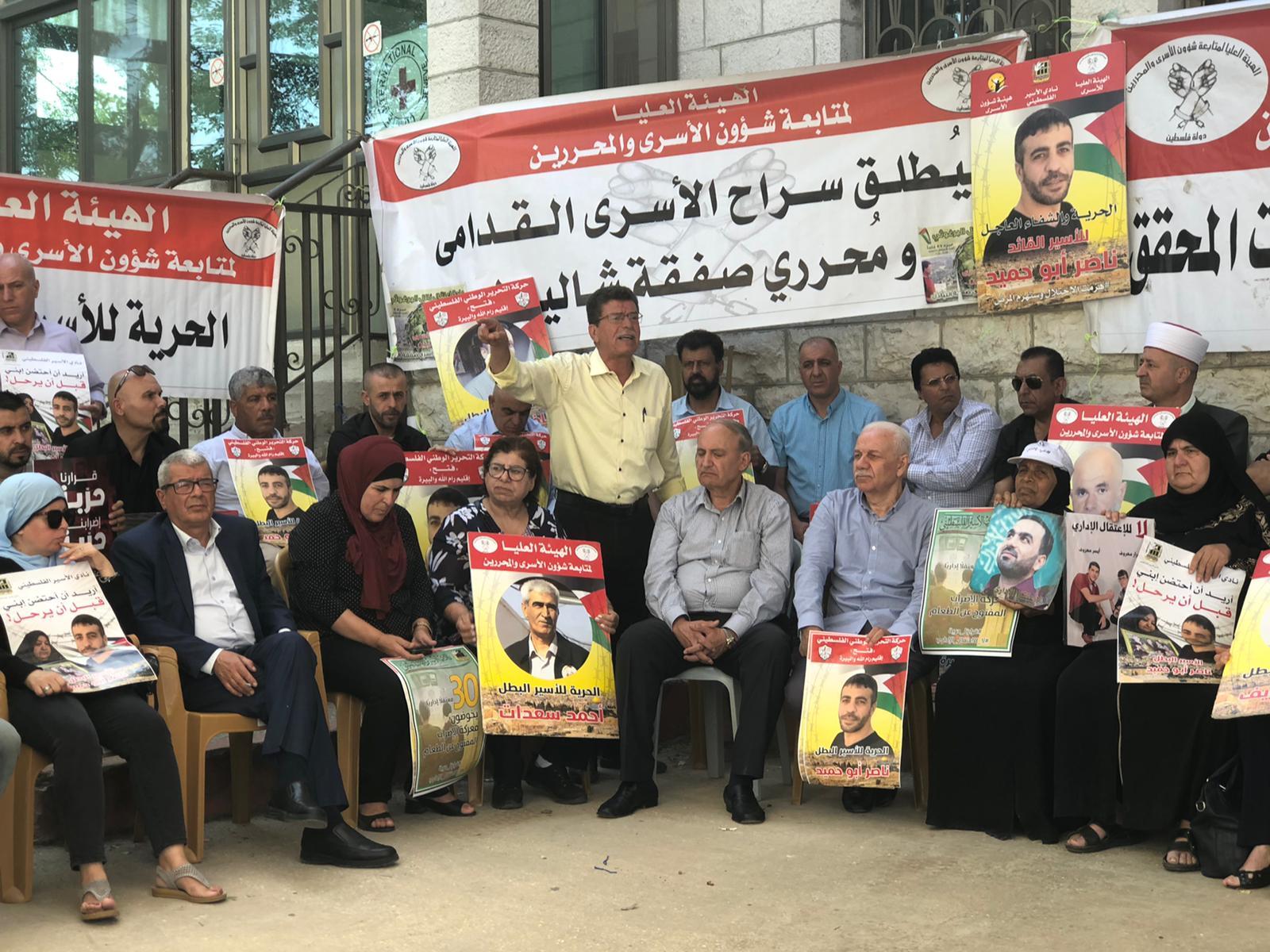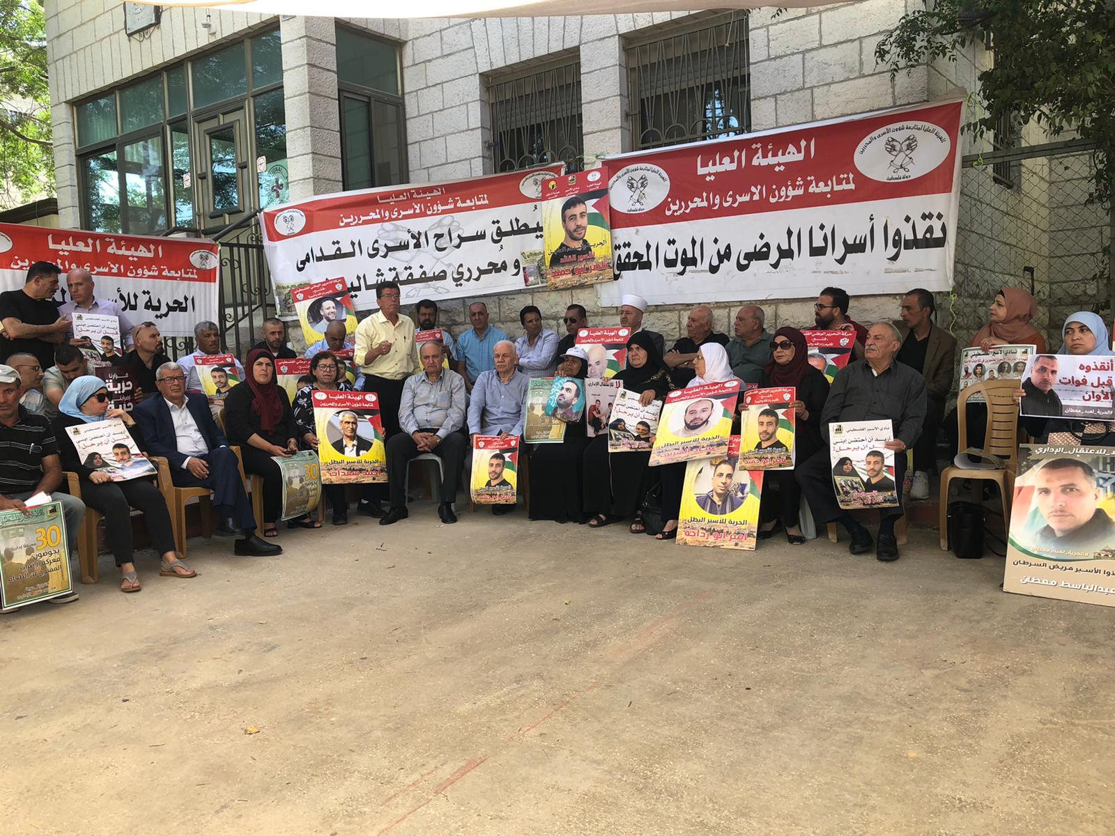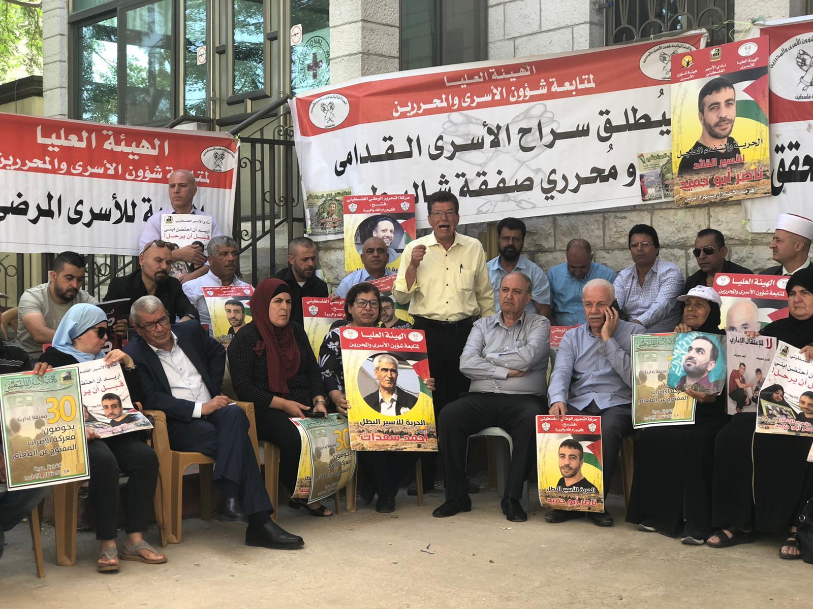 البيرة اليوم: من الوقفة الأسبوعية المساندة للأسرى والأسيرات في سجون الاحتلال، ومساندة المعتقلين الإداريين في إضرابهم عن الطعام رفضاً لاعتقالهم الإداريّ، وإسناداً للأسير المريض ناصر أبو حميد، وكافة الأسرى في سجون الاحتلال