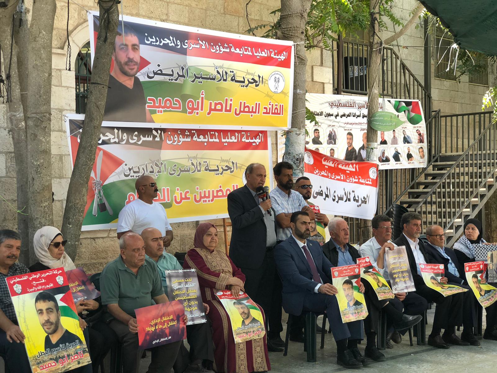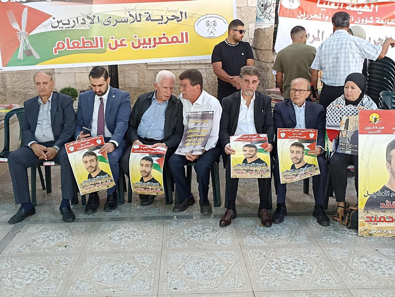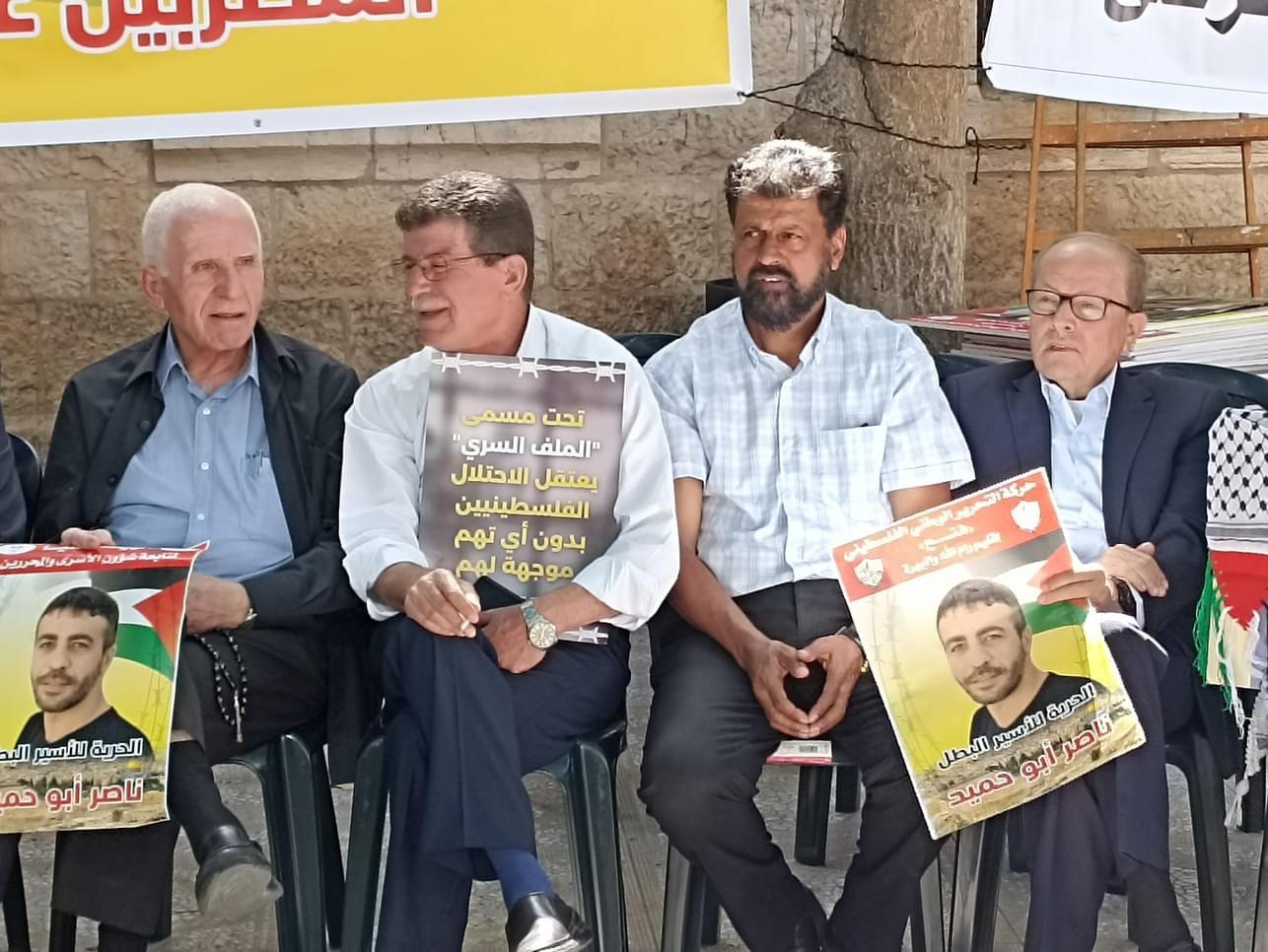 من دعوة اللجنة الوطنية لمساندة الأسرى في سجون الاحتلال، انتصارًا لدماء شهداء الوطن وجنين، وإسنادًا للأسرى منهم المرضى وعلى رأسهم الأسير ناصر ابو حميد، والمعتقلين الإداريين المضربين عن الطعام، اليوم في إقامة خيمة اعتصام دائمة في محافظة رام الله والبيرة وذلك ساحة مركز البيرة الثقافي