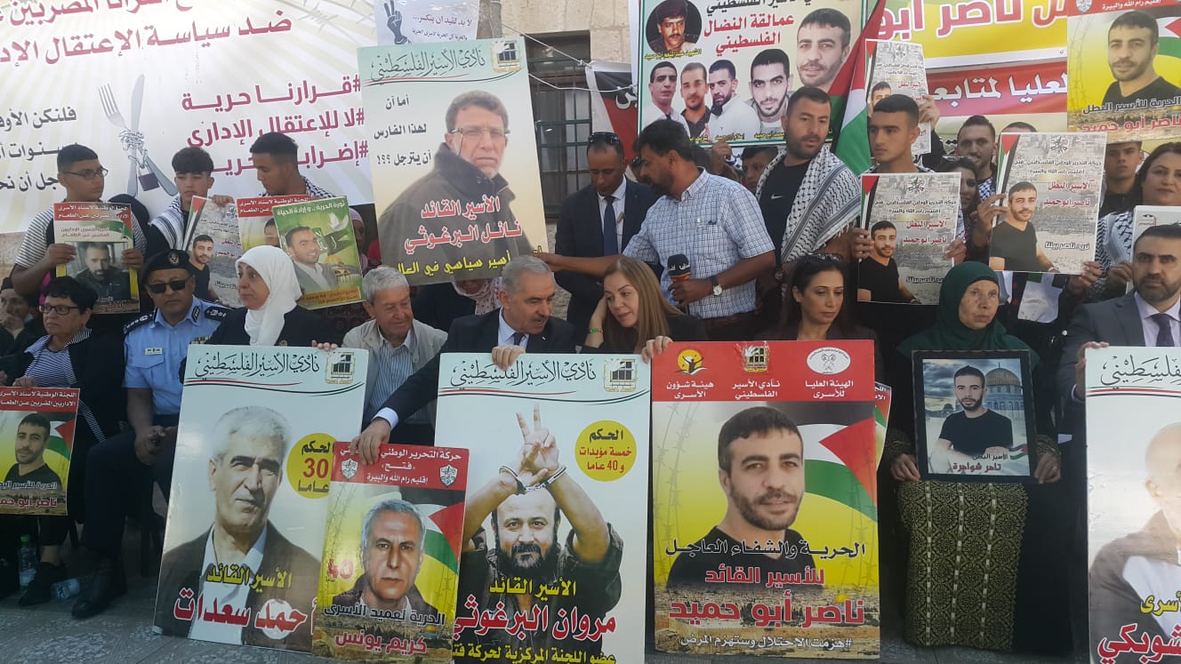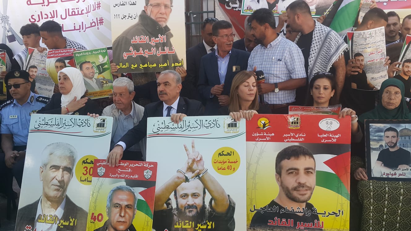 من خيمة الاعتصام في البيرة اليوم بحضور رئيس الوزراء د. محمد اشتيه، إسنادا للأسرى والمعتقلين الإداريين المضربين عن الطعام في سجون الاحتلال