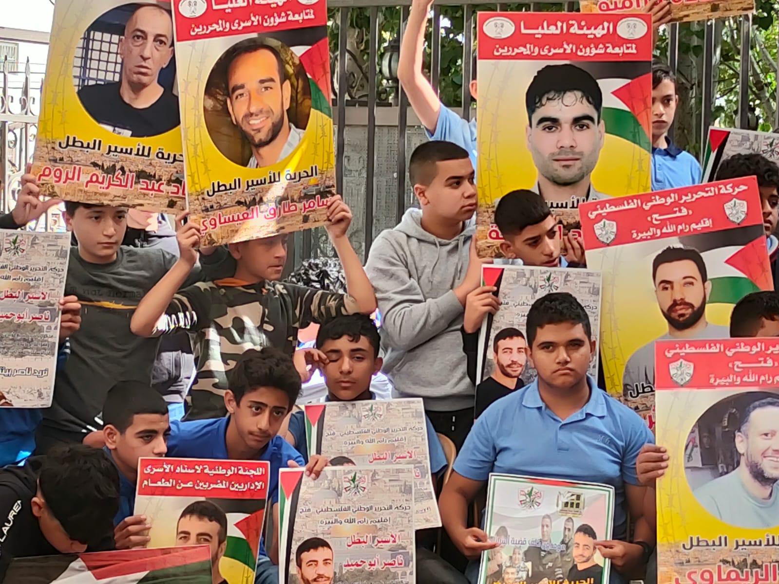 البيرة اليوم: من الاعتصام الأسبوعي لإسناد الأسير المريض بالسرطان ناصر أبو حميد والأسرى والأسيرات كافة في سجون الاحتلال اليوم من أمام مقر الصليب الأحمر.