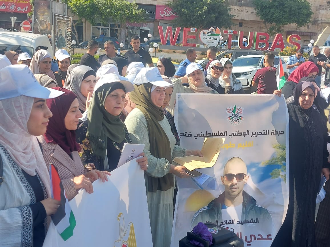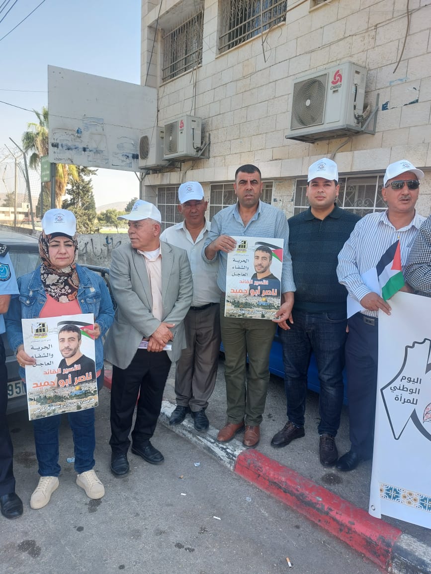 من الوقفة الداعمة والمساندة مع الاسيرات والاسرى بمناسبة اليوم الوطني للمرأة الفلسطينية والتي دعت لها وزارة شؤون المرأة بالتنسيق مع نادي الأسير الفلسطيني وهيئة شؤون الأسرى والمحررين في محافظة طوباس والاغوار الشمالية