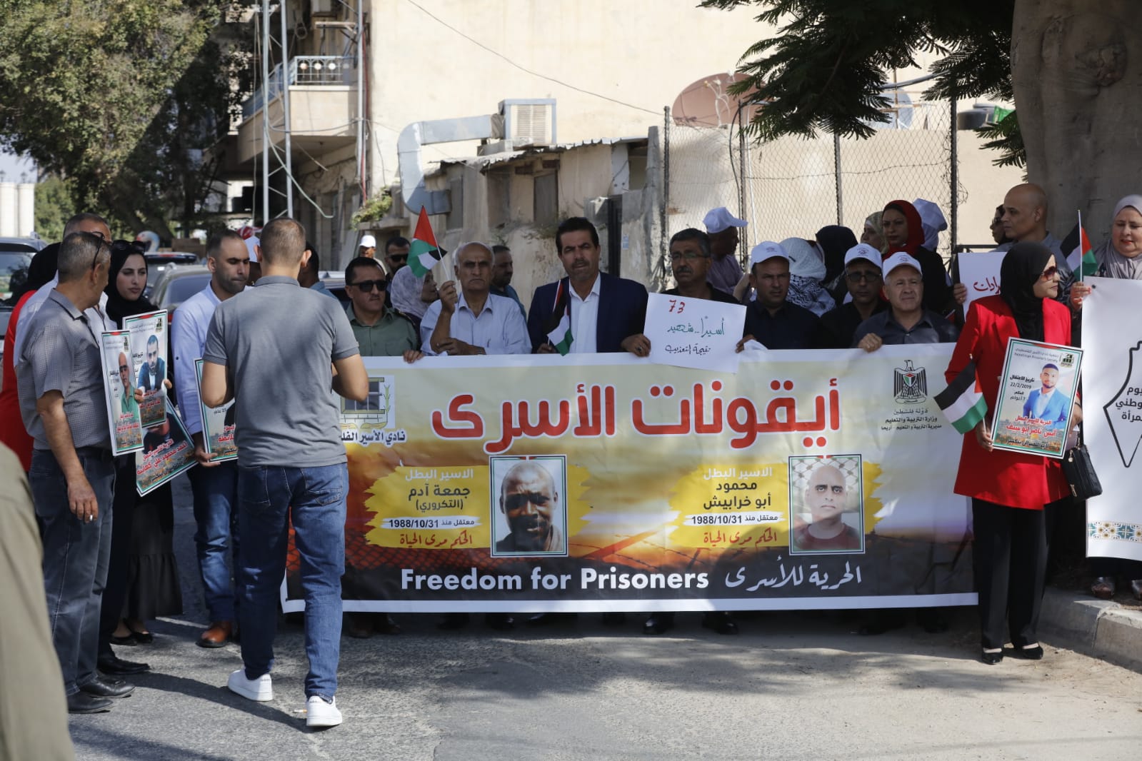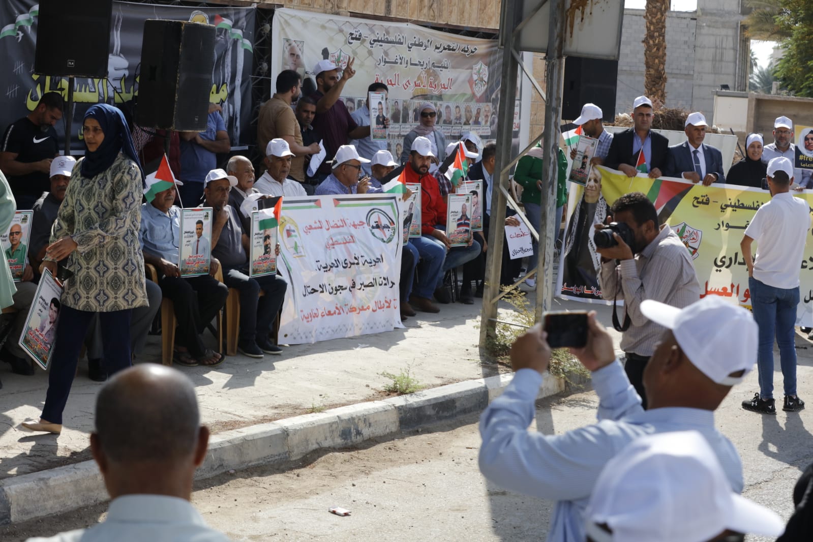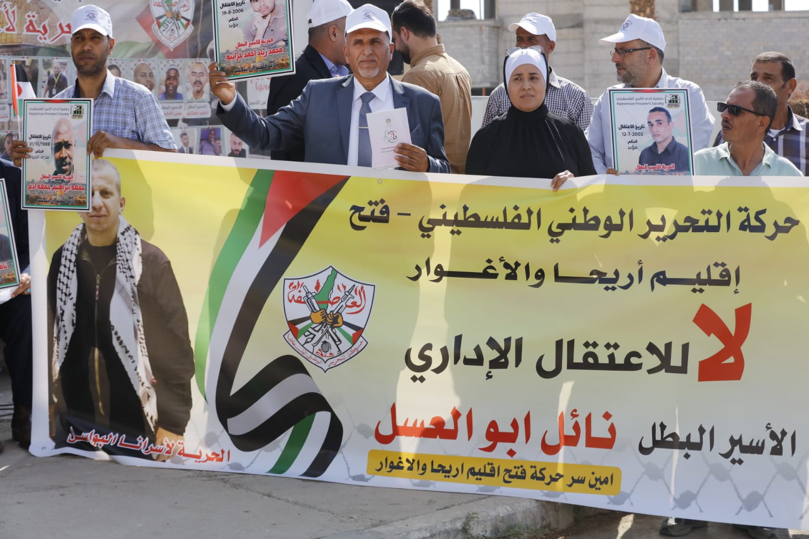 جانب من الوقفة الاسنادية للاسرى والاسيرات في سجون الاحتلال الإسرائيلي بمناسبة اليوم الوطني للمرأة الفلسطينية أمام مكتب لجنة الصليب الأحمر الدولي أريحا