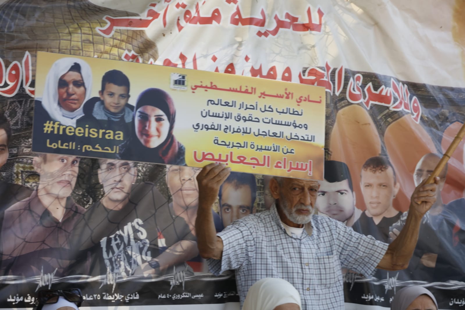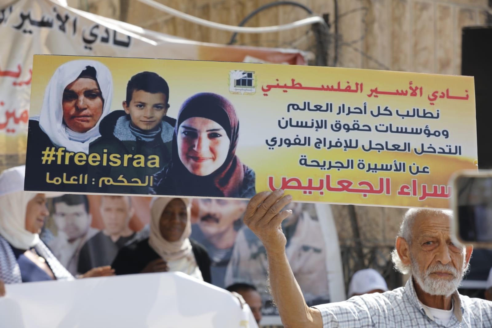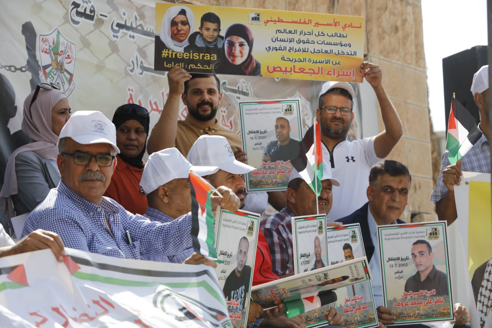 جانب من الوقفة الاسنادية للاسرى والاسيرات في سجون الاحتلال الإسرائيلي بمناسبة اليوم الوطني للمرأة الفلسطينية أمام مكتب لجنة الصليب الأحمر الدولي أريحا