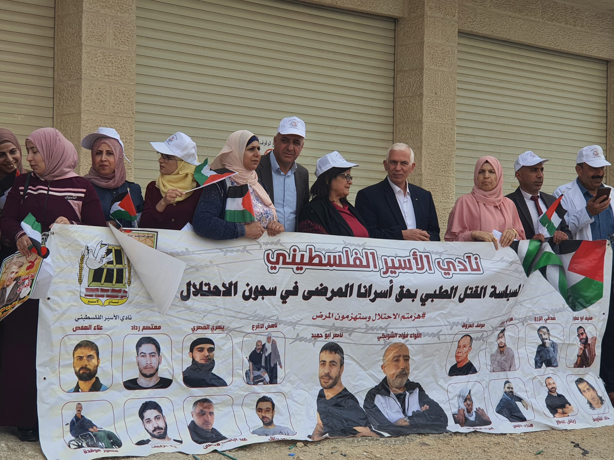 جانب من الوقفة المساندة للاسرى والاسيرات امام الصليب الاحمر في بيت لحم في اليوم الوطني للمرأة الفلسطبنية