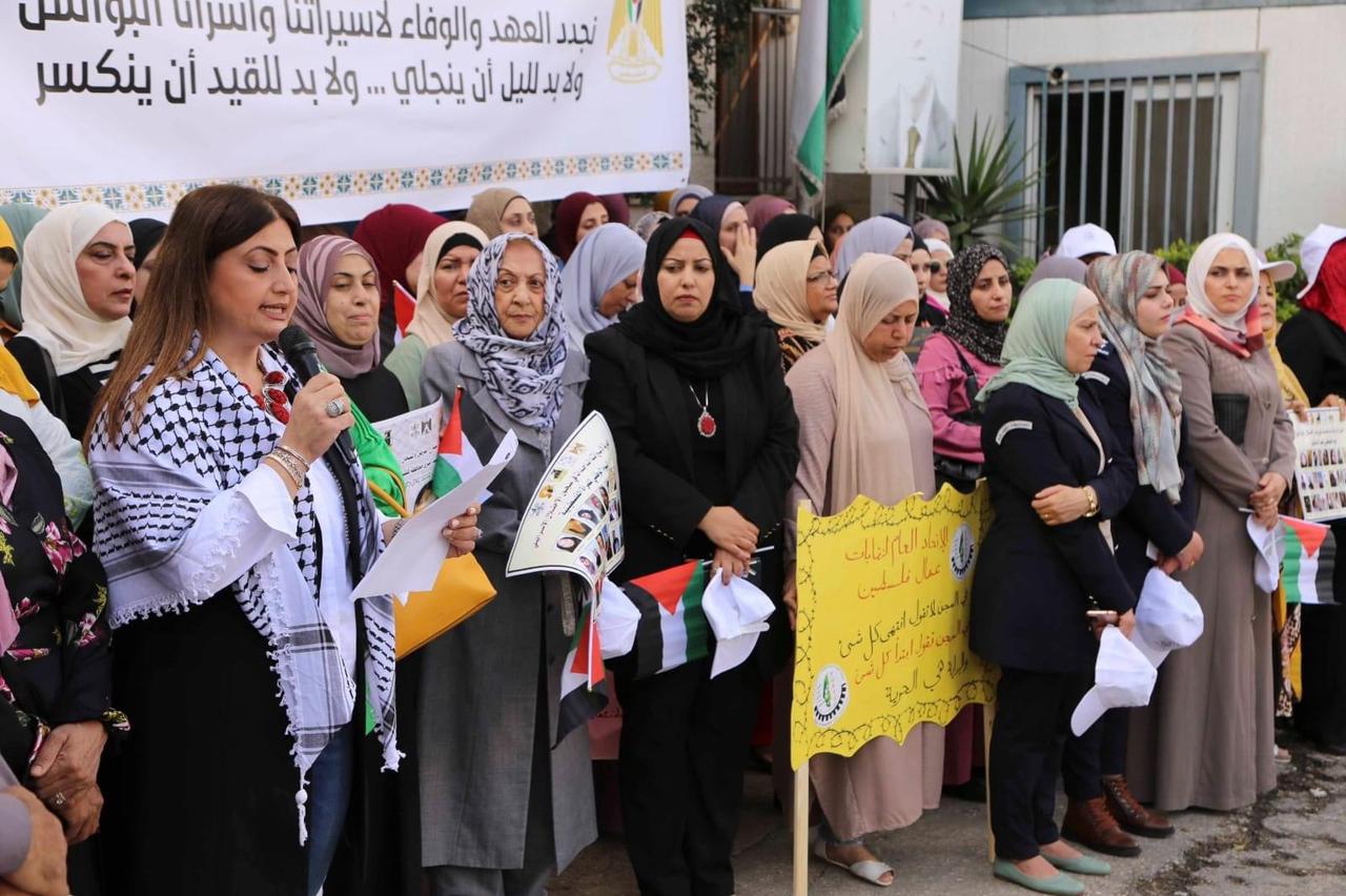 وتلت سوسن غشاش مدير مكتب المحافظ بيان صادر عن وزارة شؤون المراة بمناسبة اليوم الوطني للمراة الفلسطينية، دعا الى اطلاق سراح الاسرى المرضى والاطفال والنساء، وفي مقدمتهم الاسير المريض ناصر حميد، ودعا المؤسسات الدولية الراعية لحقوق الانسان العمل على انهاء ملف الاعتقال الاداري وانهاء سياسة العزل الانفرادي، كما طالب البيان الصليب الاحمر الدولي بتسهيل الزيارات العائلية للاسرى والاسيرات وتسييرها دون انقطاع.